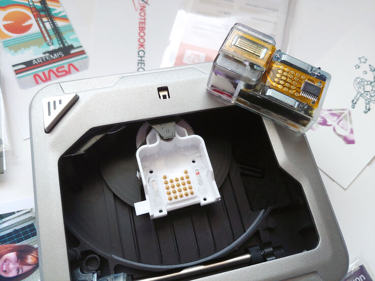 As impressoras profissionais usam até doze tintas e resoluções muito mais altas, portanto, as expectativas para essa unidade de três tintas e 600 dpi devem ser modestas, embora as impressões pareçam decentes à distância de um braço. Essas amostras são de uma unidade de pré-produção, e a empresa afirma que a qualidade de impressão e o aplicativo serão aprimorados no modelo final.