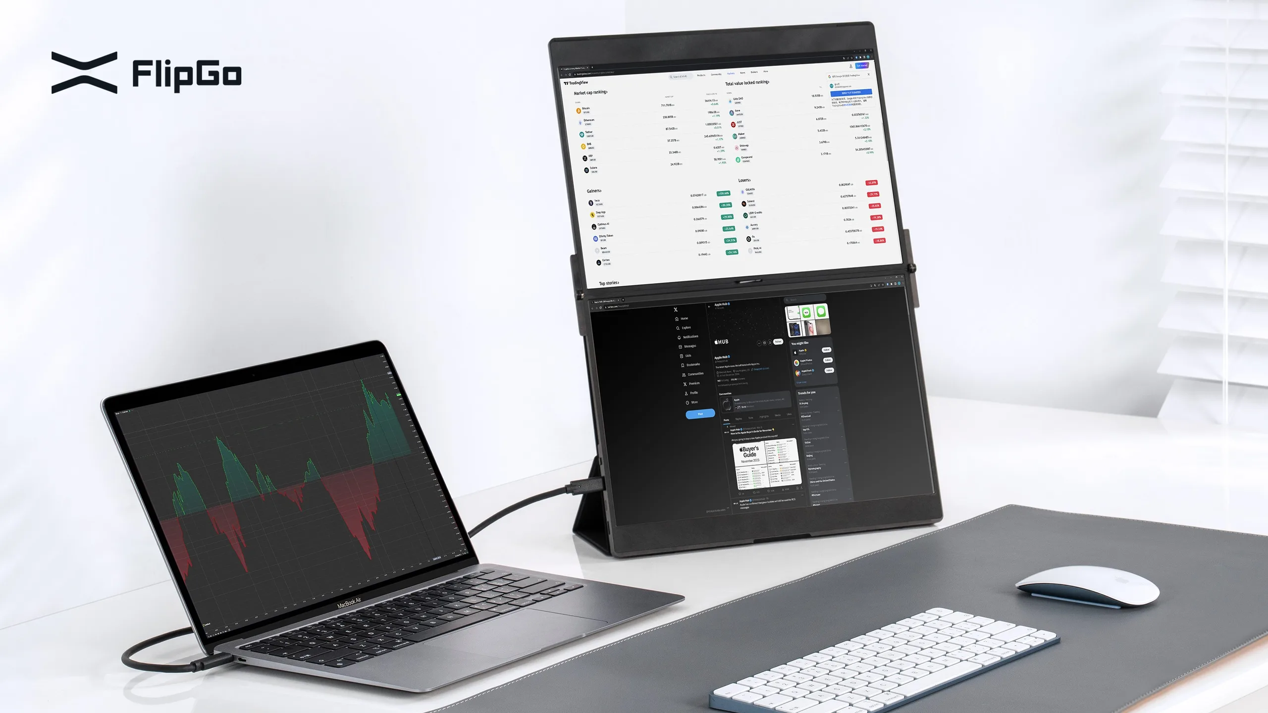 O JSAUX FlipGo Lite tem o mesmo design inovador e premium de monitor externo duplo de um cabo que seus irmãos, mas é considerado ainda mais portátil do que o Pro de 16 polegadas.