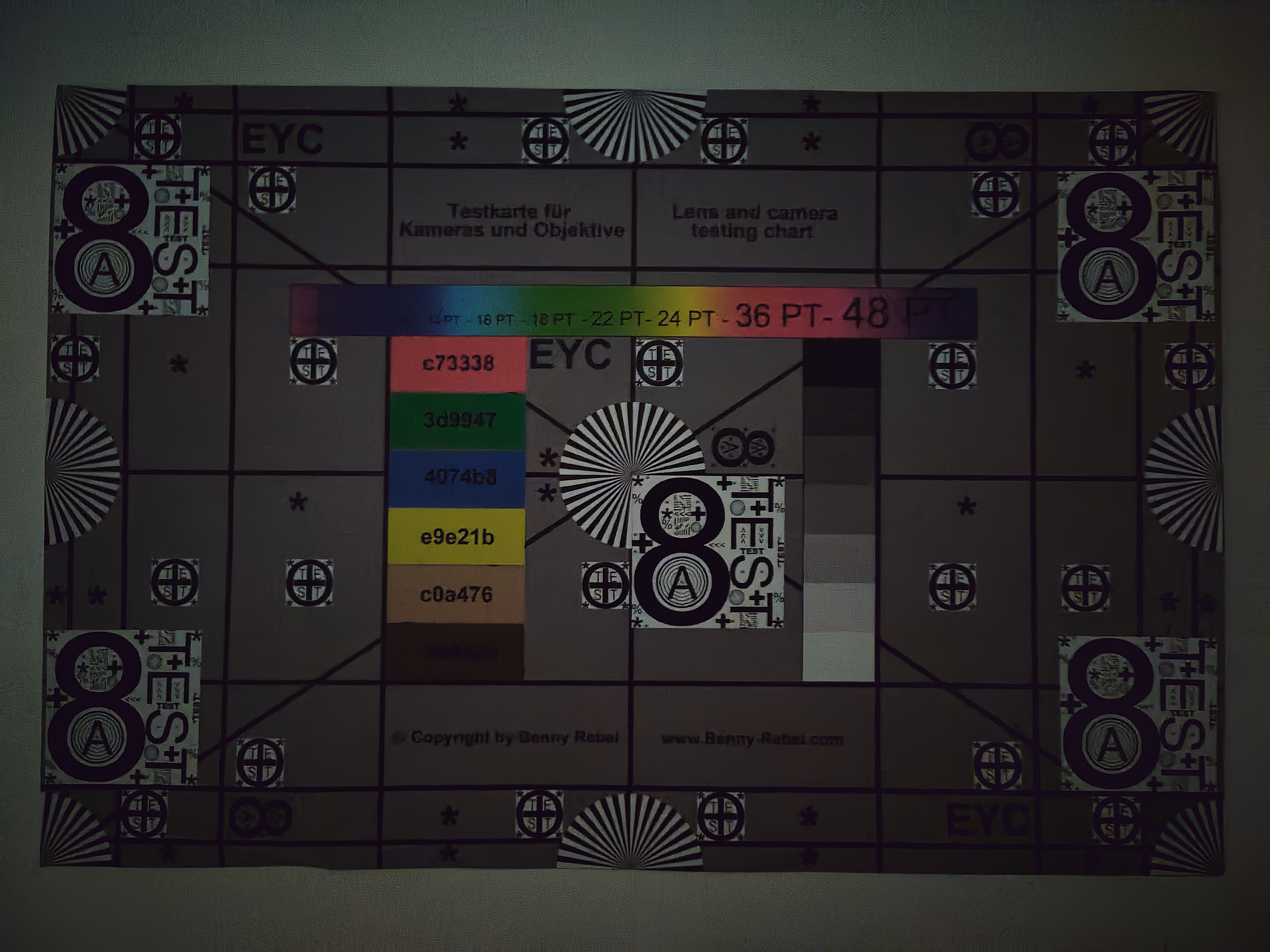 | Colorchecker dE 2000 max. * | 2.5 | 2.38 5% | 4.7 -88% | 2.9 -16% |