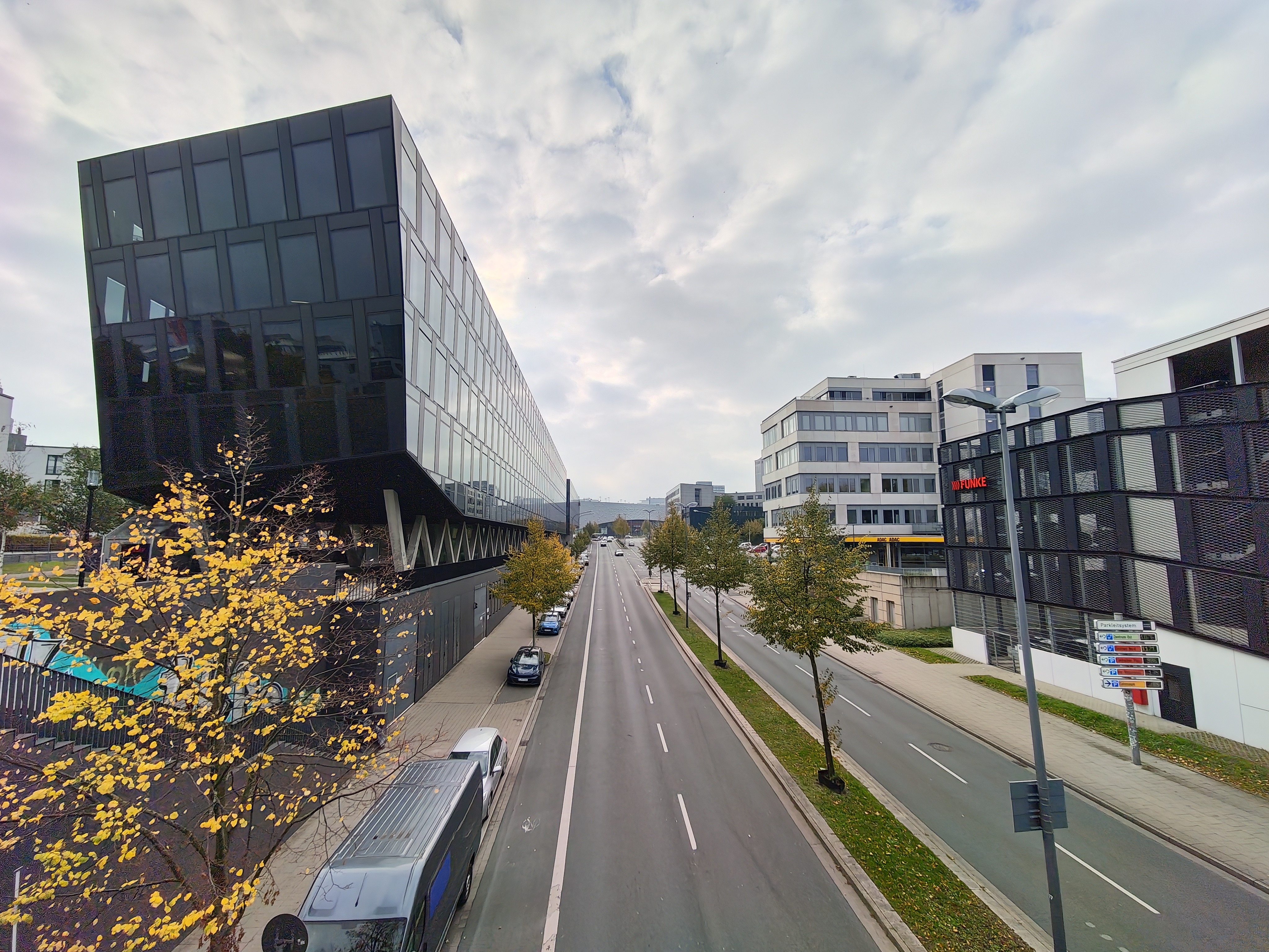 A câmera principal produz resultados visivelmente melhores e pode até capturar fotos sólidas com pouca luz. Entretanto, a câmera ultra-wide, apesar de sua alta resolução, oferece detalhes limitados e o zoom é restrito apenas ao digital.