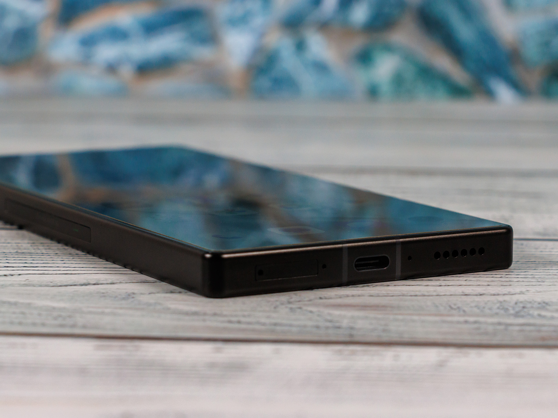 Juntamente com a porta USB 3.2 rápida, o telefone inclui vários elementos de LED configuráveis. Para áudio com fio, estão disponíveis um conector de 3,5 mm de baixo ruído (SNR: 96,6 dBFS) e uma porta USB-C.