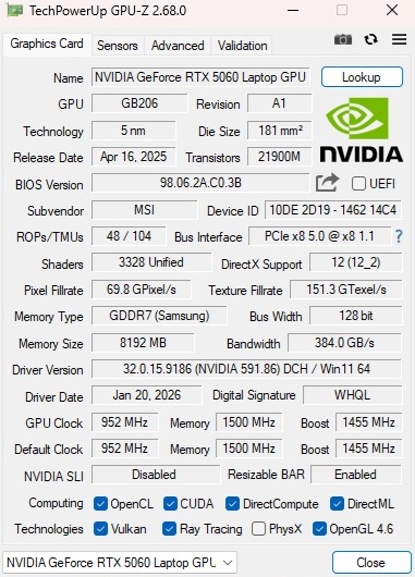 | MSI Cyborg 17 B13WFKG i7-13620H, GeForce RTX 5060 Laptop | Acer Nitro V 16 AI ANV16-42-R860 R5 240, GeForce RTX 5050 Laptop | HP Omen 16-ap0091ng R9 8940HX, GeForce RTX 5060 Laptop | Lenovo Legion 7 16IAX10 Ultra 7 255HX, GeForce RTX 5060 Laptop | Gigabyte Gaming A16 GA6H i7-13620H, GeForce RTX 5070 Laptop | |