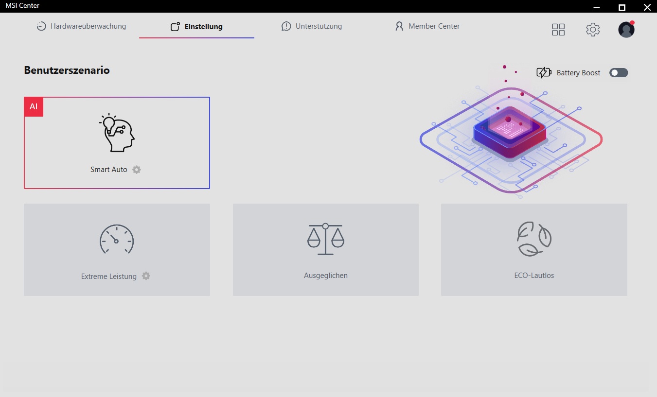 | Modo | Smart Auto | Desempenho extremo | Balanceado | ECO Silencioso |