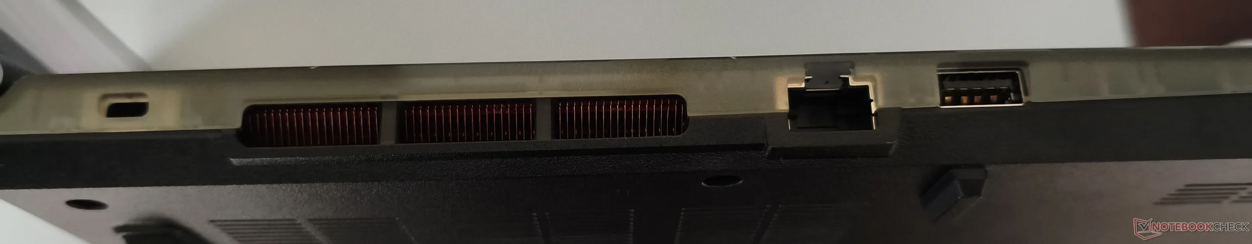 A seleção de portas não é particularmente generosa. Três portas USB parecem bastante limitadas, especialmente porque a MSI omitiu o suporte a USB 4 e Thunderbolt. No lado positivo, a porta USB-C disponível suporta Power Delivery e DisplayPort. Os monitores externos também podem ser conectados diretamente via HDMI. O pacote é complementado por um conector de áudio, uma porta RJ45 e uma trava Kensington.