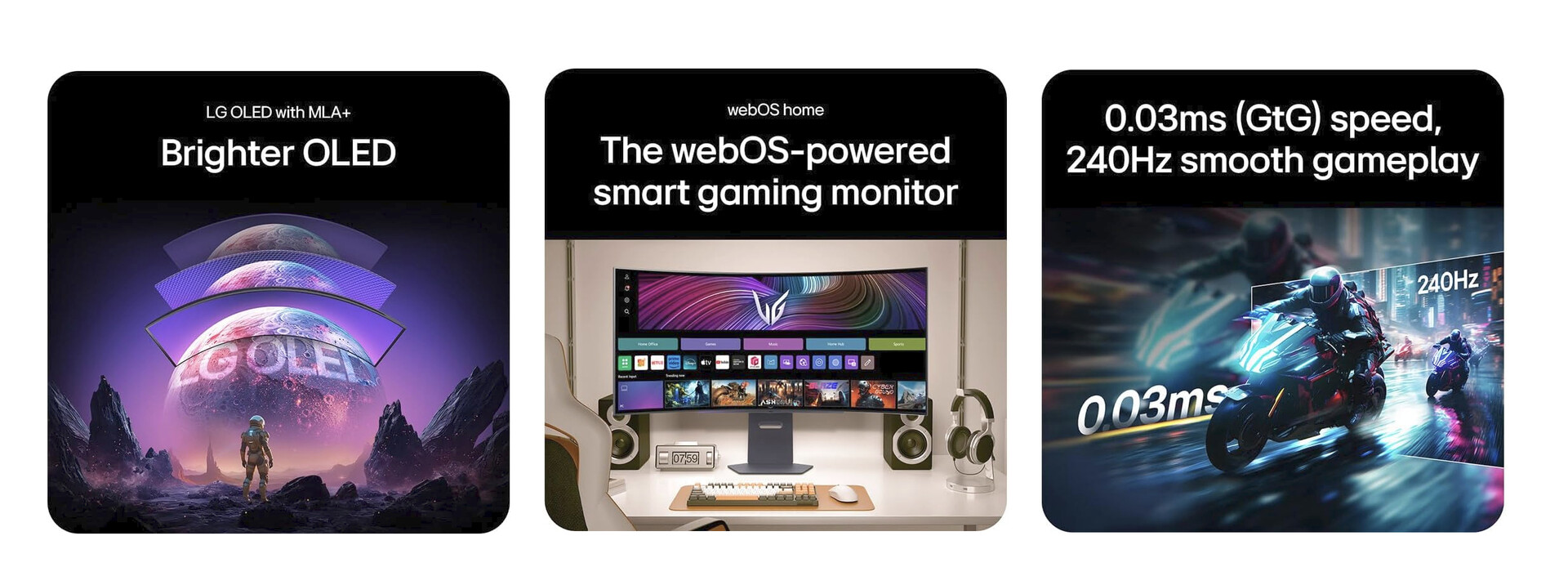 Agora, ela complementou esse monitor para jogos de 45 polegadas com um monitor de nome semelhante chamado UltraGear OLED 45GX90SA. O objeto de um lançamento surpresa no Japão há quase dois meseso UltraGear OLED 45GX90SA utiliza um painel WOLED mais antigo com resolução de 3.440 x 1.440 (1440p), proporção de 21:9 e taxa de atualização de 240 Hz. De acordo com a LG, o painel também oferece tempos de resposta GtG de 0,03 ms, além de 275 nits de brilho SDR máximo.