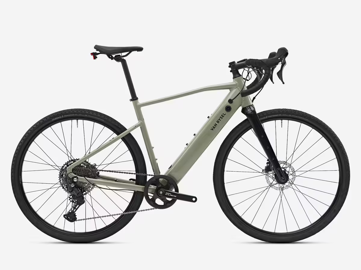 A Van Rysel E-GRVL AF Discover é descrita pela Decathlon como "o canivete suíço das bicicletas elétricas", adequada para o uso diário ou para o transporte de bicicletas. Ela é alimentada por um motor Decathlon sem escovas de 250 W e 35 Nm instalado na roda traseira. Ele pode auxiliar o ciclista em velocidades de até 25 km/h (~16 mph) em três modos: Eco, Tour e Sport. A bateria removível de 360 Wht que acompanha a motocicleta fornece até 100 km (~60 milhas) de autonomia de assistência, com uma carga completa que leva cerca de 4,5 horas.