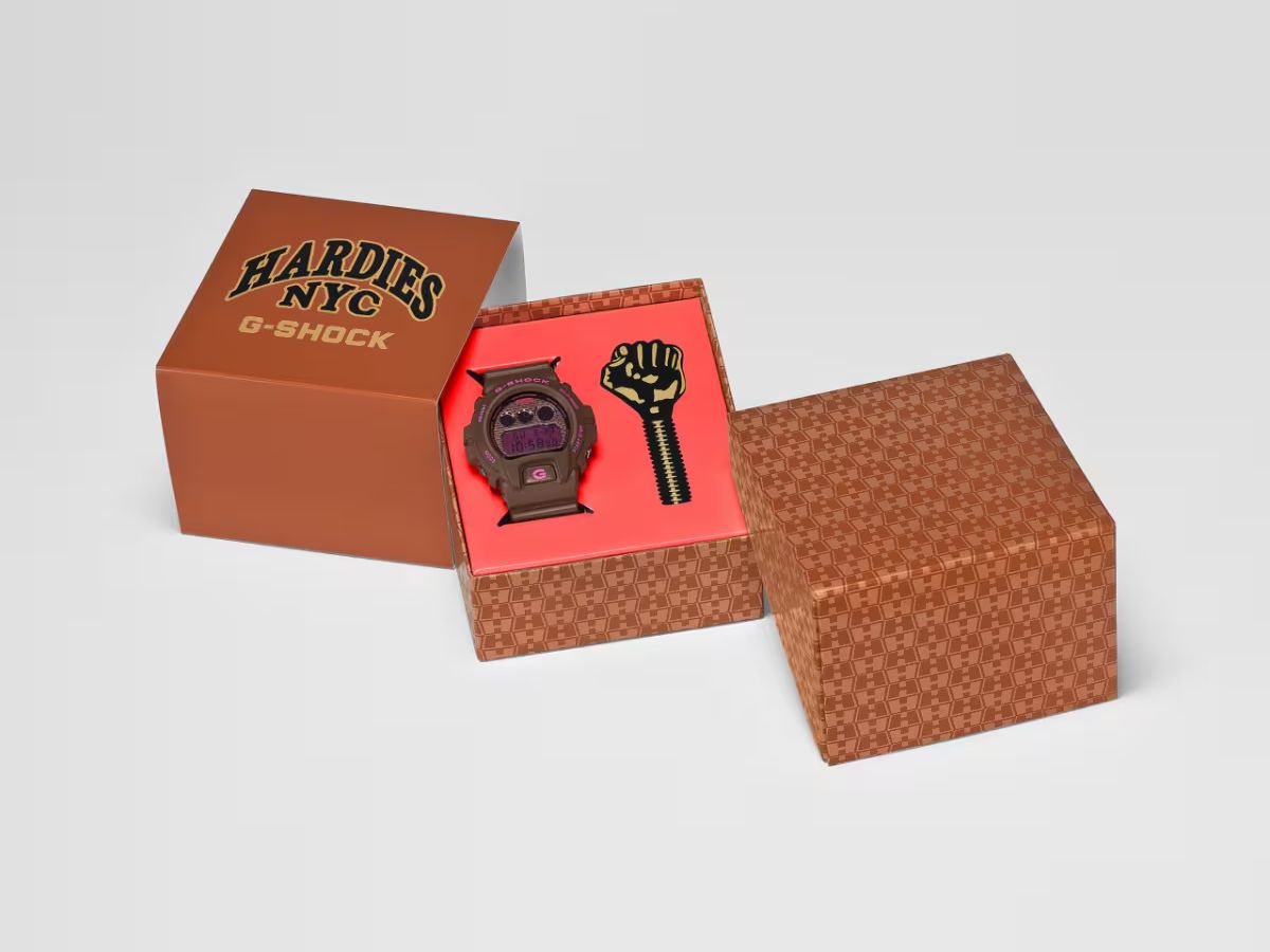 A Casio revelou um novo relógio colaborativo nos EUA: o G-Shock DW6900HH-5. Projetado em parceria com a marca de equipamentos e acessórios de skate Hardies NYC, esse relógio digital tem um design marrom e rosa.