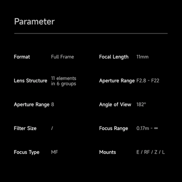 A lente olho de peixe Brightin Star 11 mm f/2.8 II já está disponível por US$ 249,99 na loja on-line do fabricante. O envio internacional é gratuito. A lente está disponível para montagem em Sony E, Nikon Z, Canon RF ou Leica SL