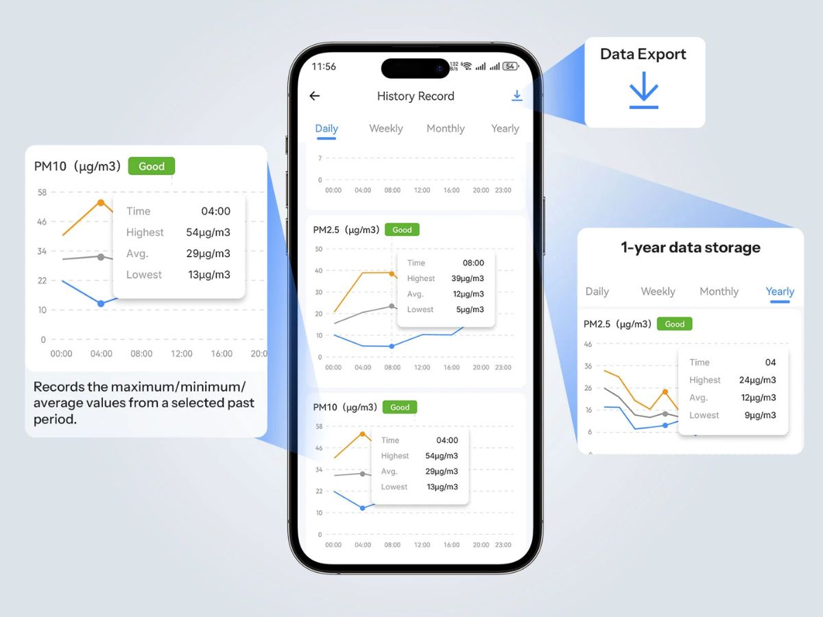Os dois novos dispositivos Sonoff AirGuard têm uma tela de 3,73 polegadas que exibe os dados coletados em tempo real. Os usuários podem receber três tipos de alertas para mudanças na qualidade do ar: um som, uma luz indicadora e notificações do aplicativo. Por meio do aplicativo da marca, o senhor pode encontrar conselhos sobre como melhorar a qualidade do ar. Além disso, os dados de até um ano são armazenados aqui e estão disponíveis para exportação. Esses sensores inteligentes suportam Wi-Fi de 2,4 GHz e operam em temperaturas de -10 a 50°C (14 a 122°F) e níveis de umidade de 5 a 95% UR. A estrutura branca tem um suporte integrado e mede 70 x 103 x 26 mm (~2,76 x 4,06 x 1,02 polegadas).