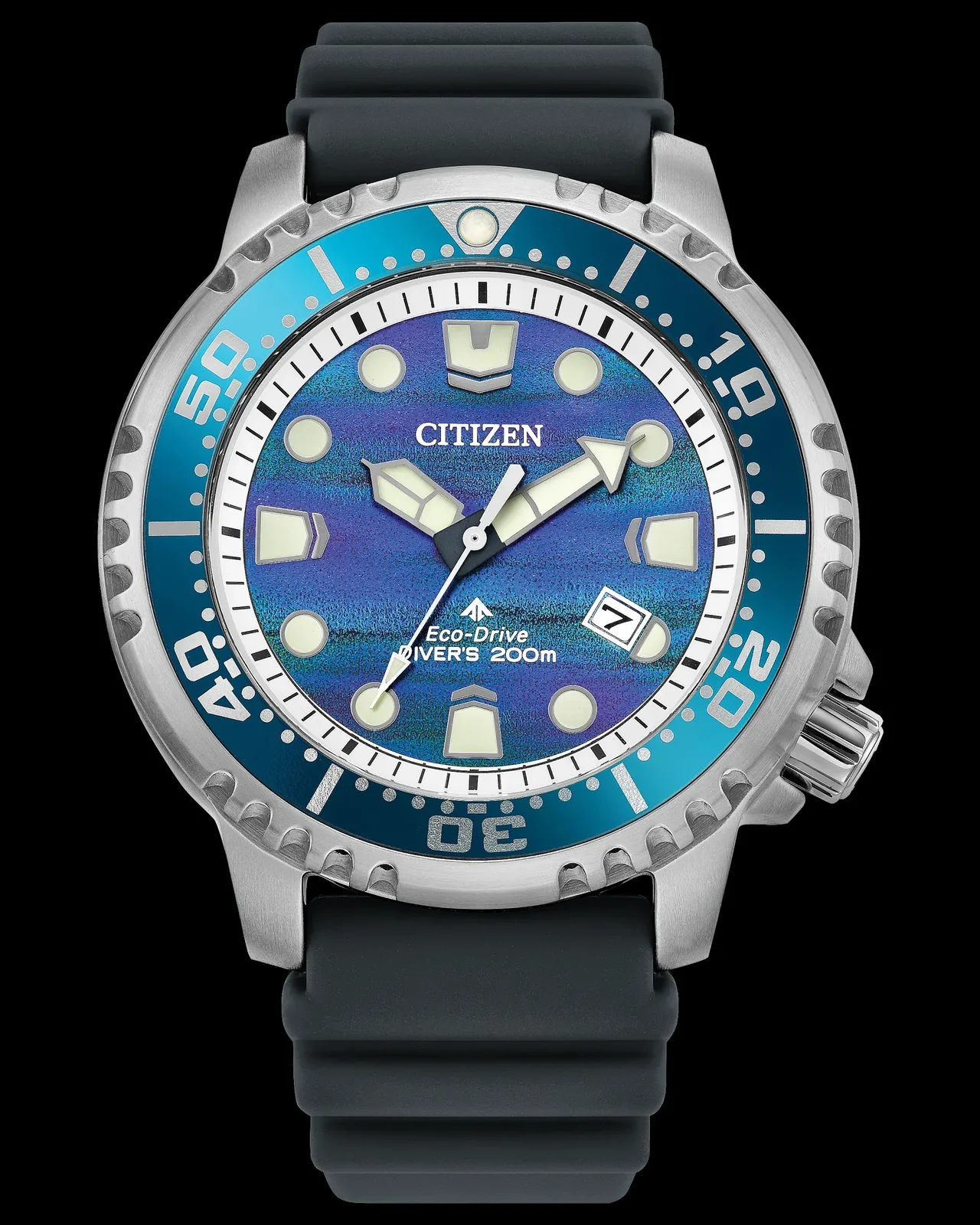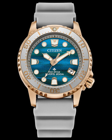 A Citizen descreve o novo mostrador vívido como um acabamento de "tinta estrutural" com listras horizontais, o que cria uma superfície azul inconstante que se torna levemente roxa sob determinada iluminação. O efeito é visível em ambos os modelos, enquanto o restante do layout permanece consistente com os designs existentes do Promaster Diver.