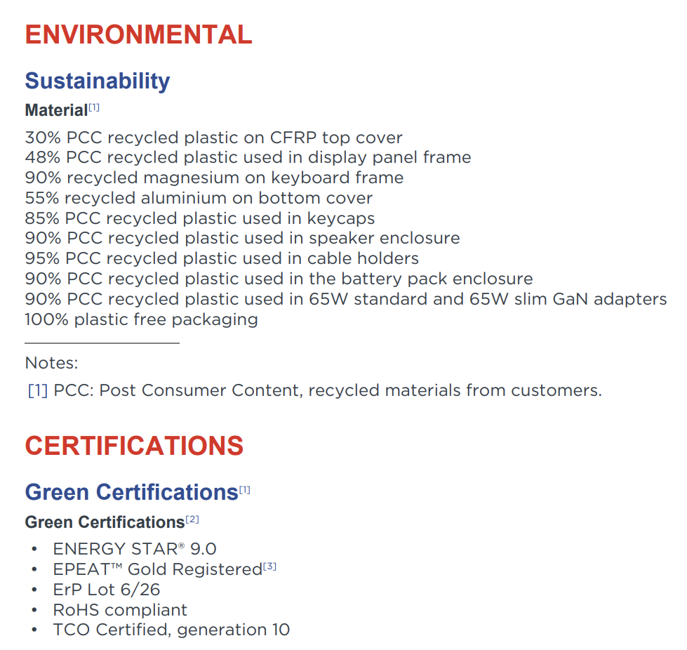 O ThinkPad X13 G6 atende a vários padrões ambientais, incluindo o Energy Star, e a Lenovo fornece informações abrangentes sobre a pegada de carbono do dispositivo e o uso de materiais reciclados. A embalagem é totalmente reciclável e não contém plásticos.
