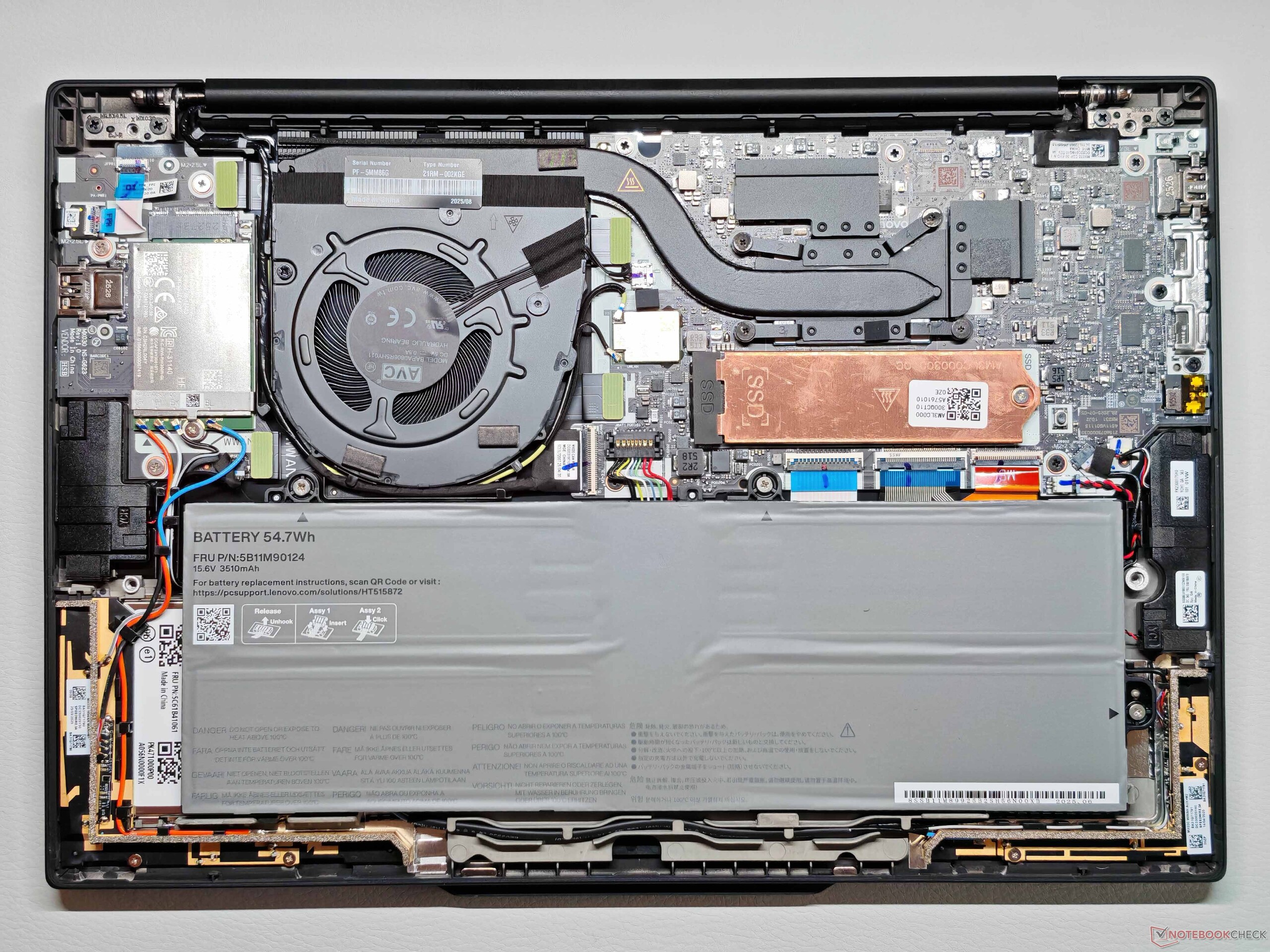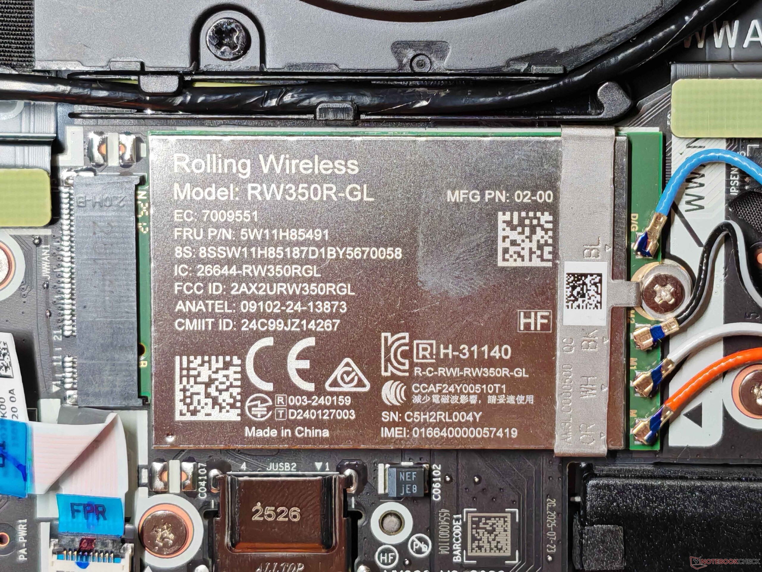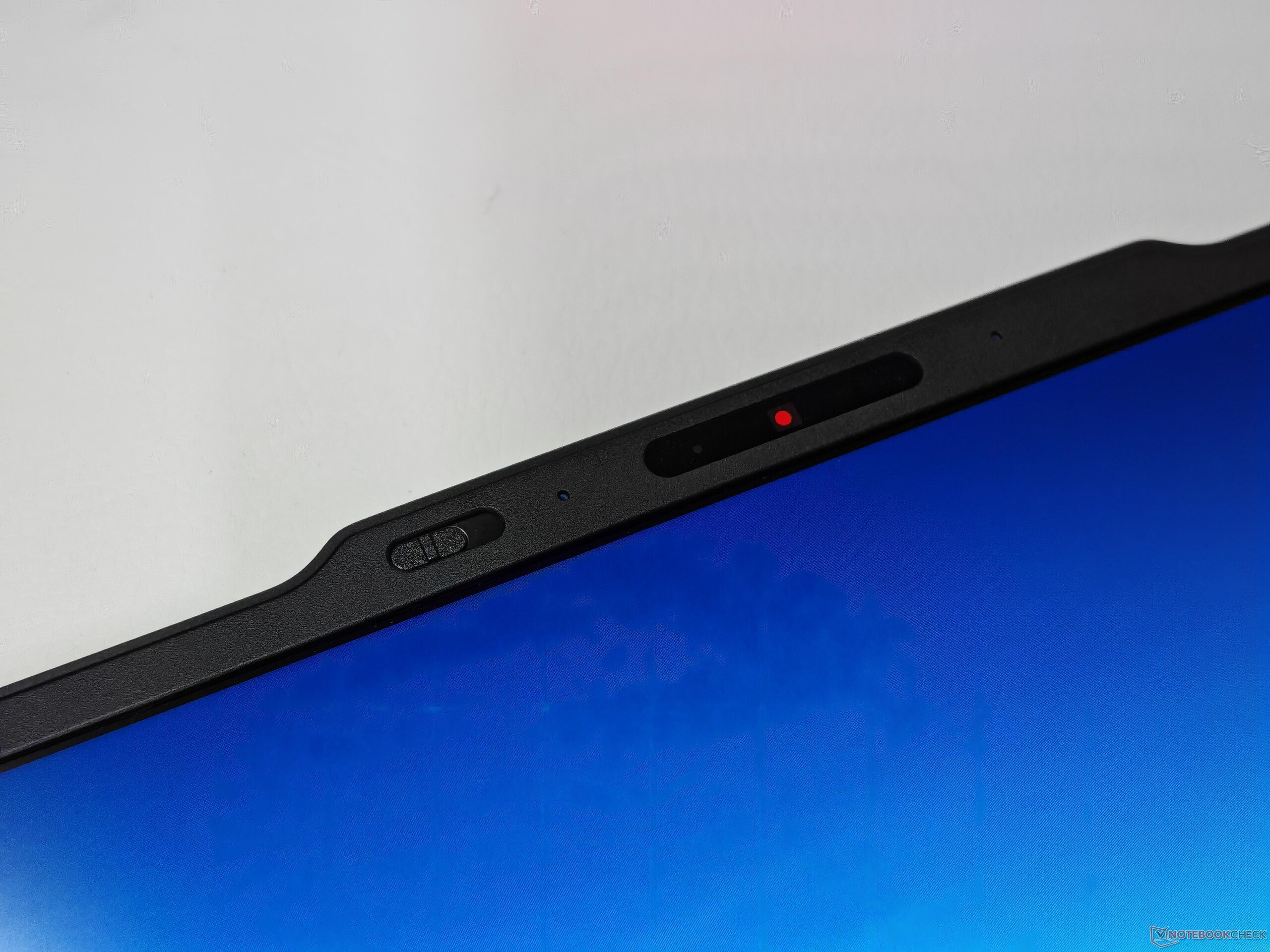 Em termos de portas, agora há apenas um único conector USB-A no lado direito, enquanto as duas portas USB-C, incluindo Thunderbolt 4, ficam no lado esquerdo. O módulo WLAN suporta Wi-Fi 7 e oferece taxas de transferência muito altas e estáveis. A câmera de 5 MP (incluindo IR) oferece qualidade de imagem aceitável e possui um obturador mecânico.