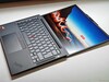 O teclado retroiluminado oferece um deslocamento de 1,5 mm para a maioria das teclas, enquanto as teclas G, H e B (que ficam ao lado do TrackPoint) e as teclas de função oferecem apenas 1,35 mm. No geral, a experiência de digitação é apenas mediana, mesmo para os padrões modernos do ThinkPad, e não é mais realmente comparável a modelos mais antigos, como o ThinkPad X1 Carbon G6 de 2018. O pressionamento das teclas é preciso, mas a sensação geral de digitação não é particularmente confortável.
