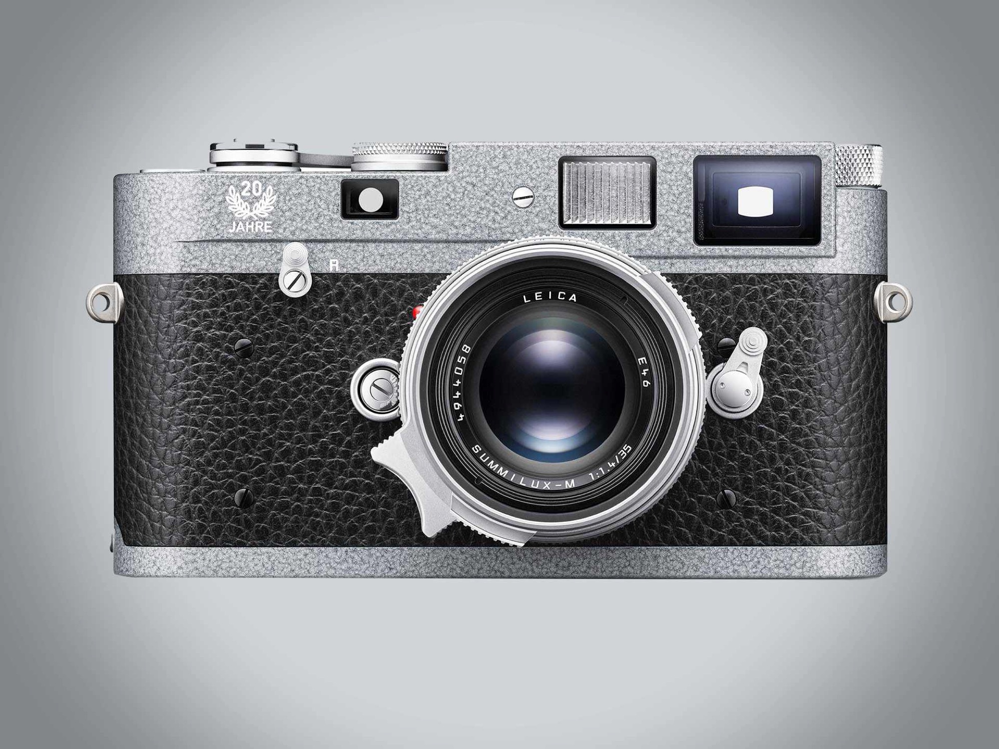 Esta edição limitada combina couro sintético preto com uma placa superior e inferior com acabamento em tinta cinza "hammertone", que se diz ser particularmente robusta. O nome vem do fato de que a superfície da tinta deve dar a impressão de que o metal foi forjado à mão com um martelo. A inscrição "20 Jahre" refere-se ao aniversário. Tecnicamente, a Limited Edition corresponde à Leica M-A normal