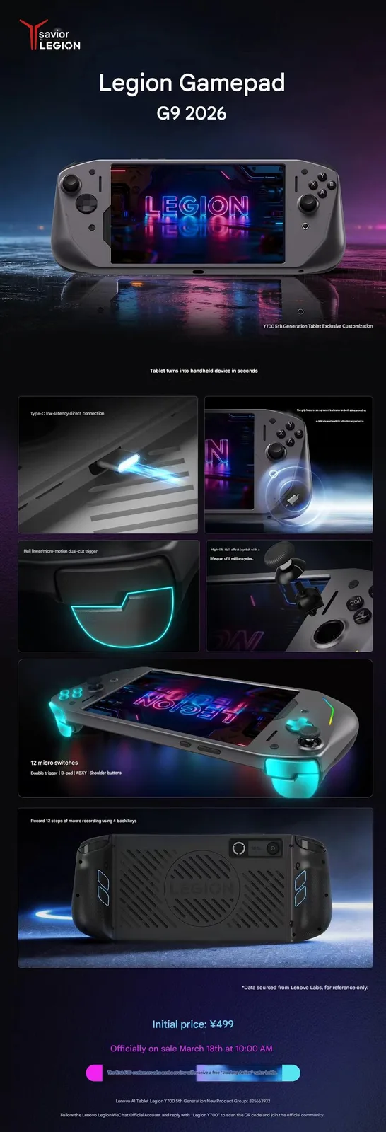 O Legion G9 2026 é oficialmente compatível apenas com o Legion Y700 Gen 5 por meio da porta USB Type-C montada na lateral do tablet. No entanto, o controlador também deve funcionar com o Legion Tab Gen 5. No entanto, a Lenovo não esclareceu se o Legion G9 2026 será vendido globalmente. Para referência, a Lenovo fixou o preço de seu novo controlador em CNY 499 (~ $ 73) na China.