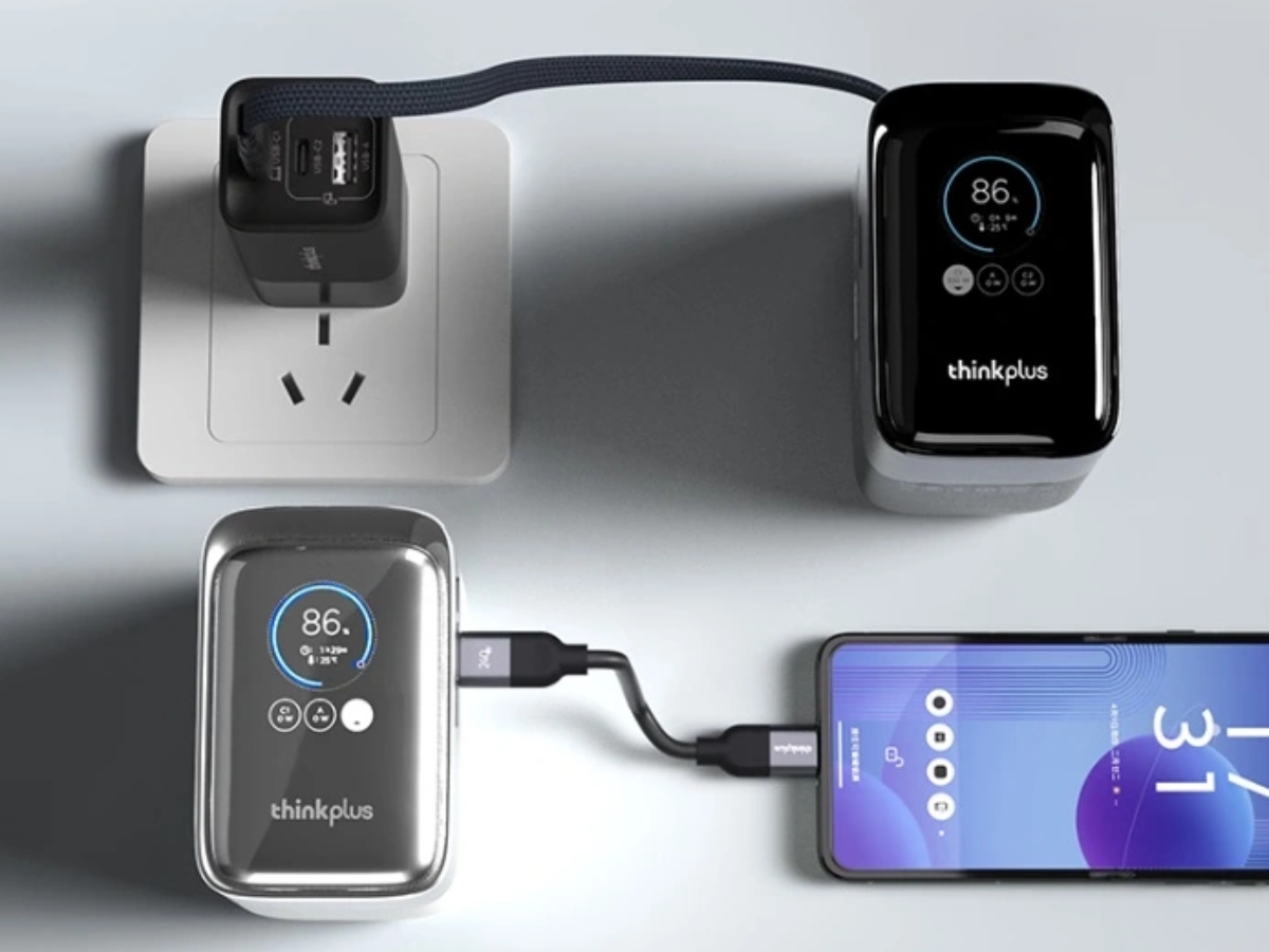 O ThinkPlus Retractable Cable Power Bank suporta vários protocolos de carregamento rápido, incluindo PPS, PD3.2 e QC, e também oferece carregamento de passagem. Esse modelo tem uma tela TFT integrada de 2,01 polegadas, que mostra as informações de carregamento em tempo real. Ele mede 82 x 81 x 51 mm (~3,2 x 3,2 x 2,0 polegadas) e vem com um pequeno cordão para facilitar o transporte.