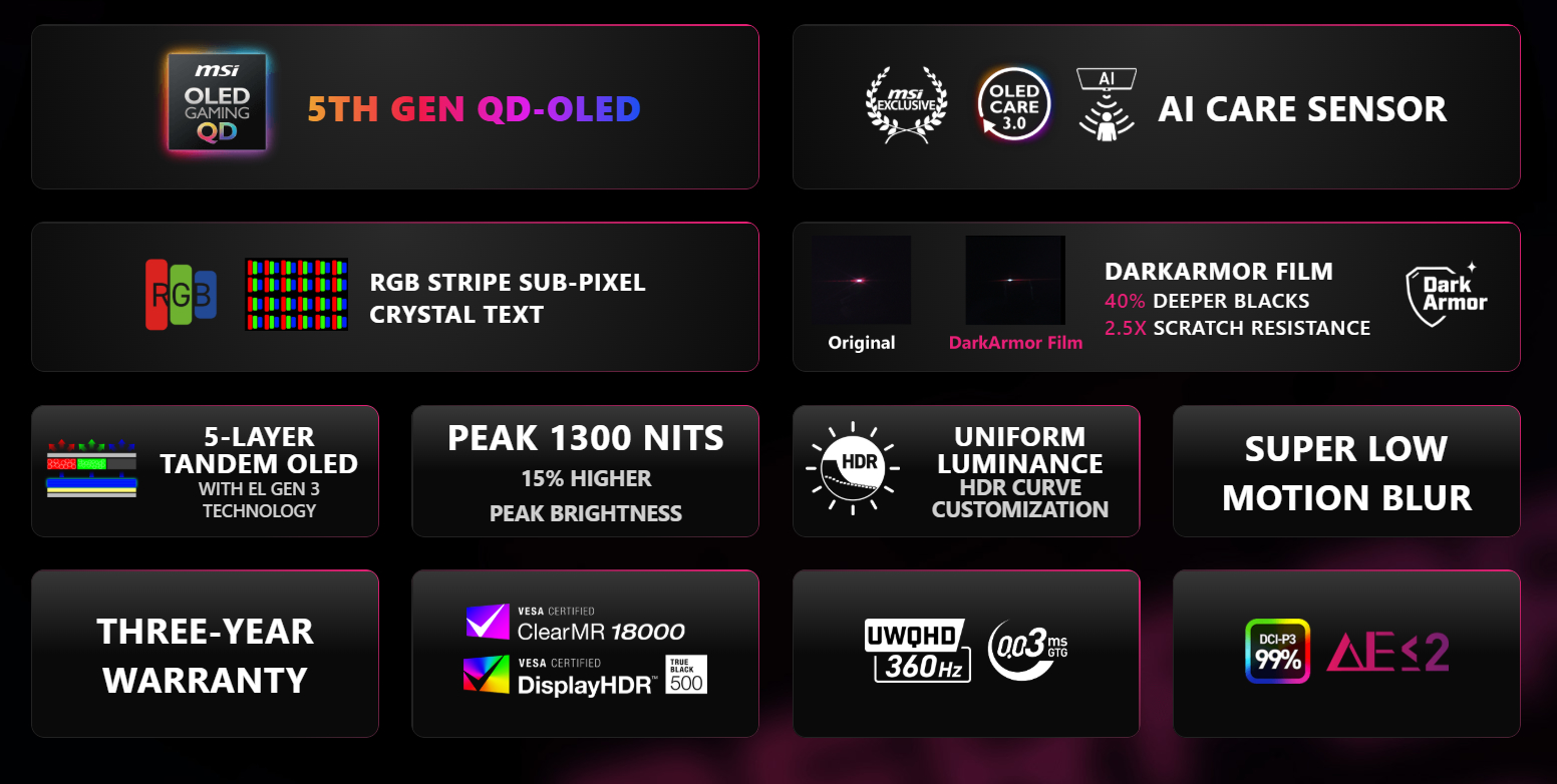 MSI lança internacionalmente monitor OLED para jogos com 1.300 nits