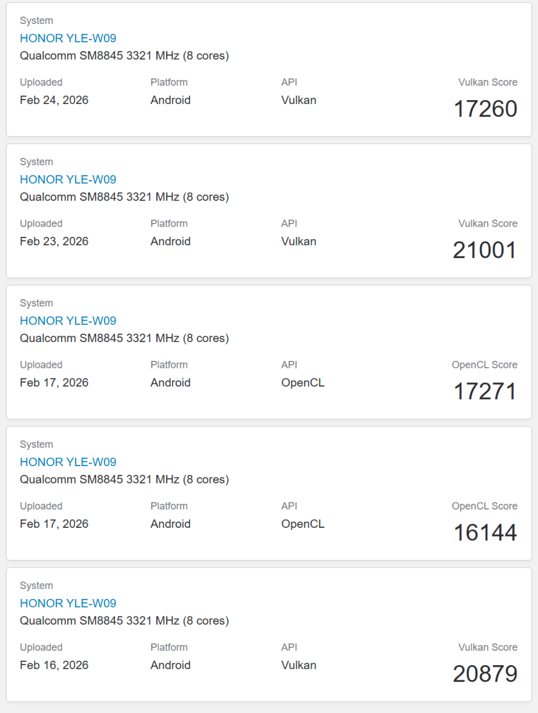 Como sempre, o Geekbench fornece um número de modelo em vez de um nome de varejo. Entretanto, o site Honor já confirmou que o MagicPad 4 está associado ao número do modelo 'YLE-W09'. Portanto, suspeitamos que os resultados reproduzidos abaixo tenham sido obtidos pelos avaliadores antes do lançamento oficial do tablet em 2 de março.