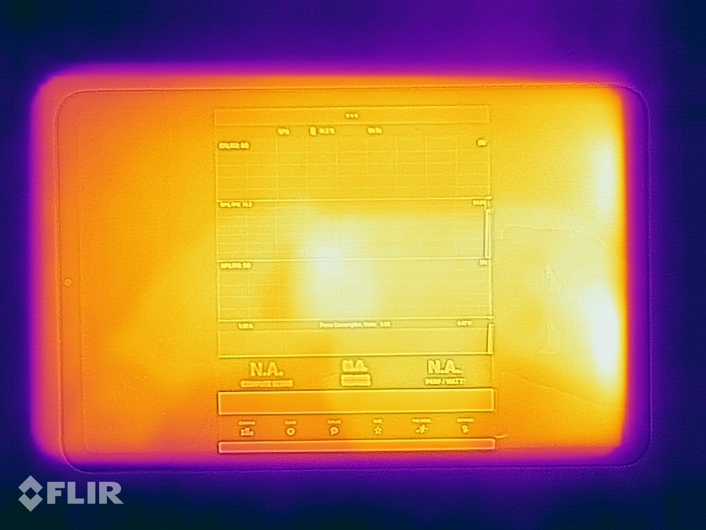(±) A temperatura máxima no lado superior é 41.9 °C / 107 F, em comparação com a média de 33.7 °C / 93 F , variando de 20.7 a 53.2 °C para a classe Tablet.