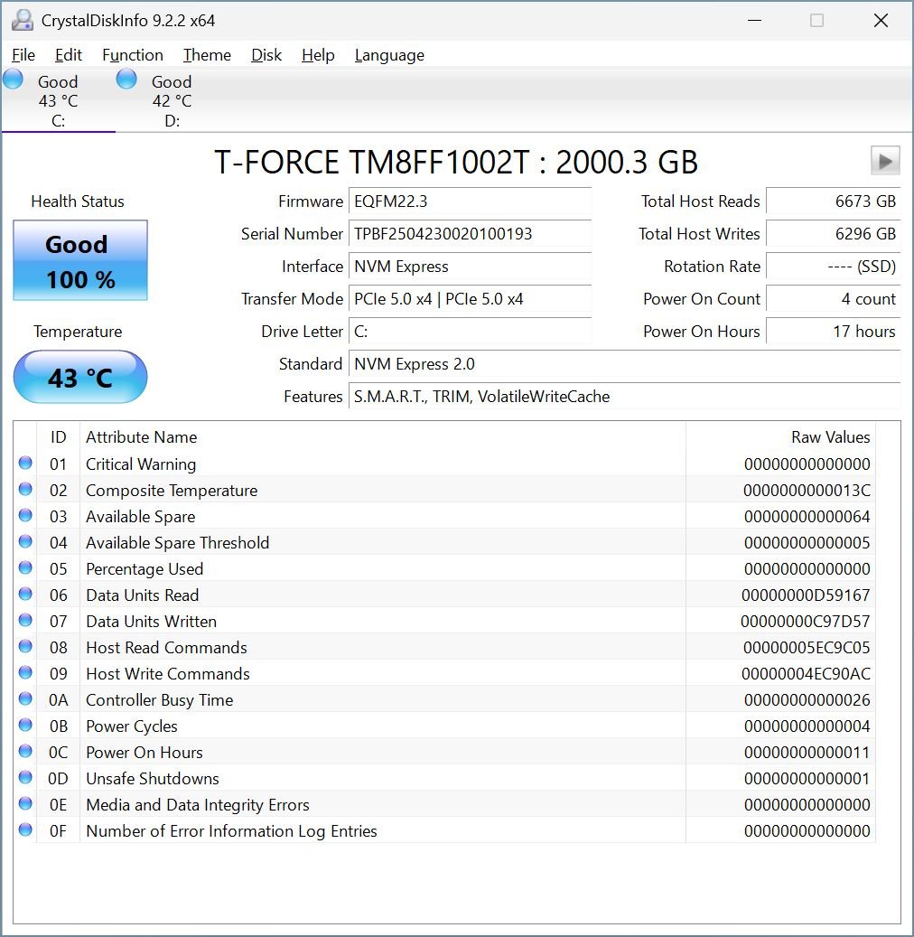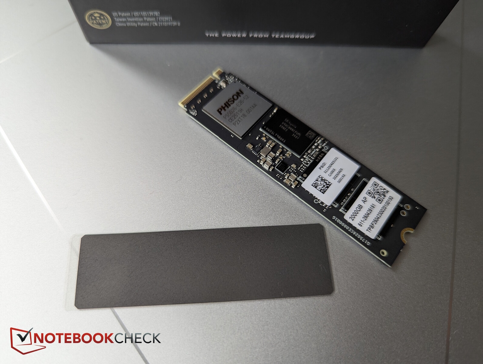 No entanto, isso só se aplica se o resfriamento adequado for garantido. Aparentemente, os SSDs PCIe 5.0 ficam ainda mais quentes do que seus antecessores. O adesivo de grafeno por si só não é suficiente, especialmente em um gabinete de laptop apertado. O calor resultante inicialmente fez com que o desempenho caísse significativamente. Somente com almofadas de resfriamento adicionais e contato com o chassi do laptop é que o calor pôde ser dissipado, permitindo que o T-Force utilizasse todo o seu potencial de velocidade. Não foi possível determinar com certeza neste teste se a camada de grafeno oferece algum benefício real ou se é apenas um artifício de marketing.