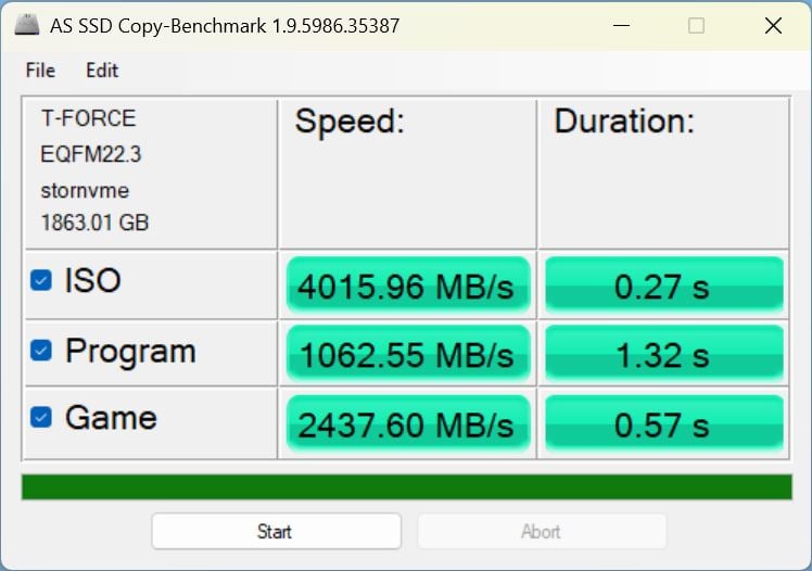 O TeamGroup T-Force Z540 não chega a atingir a velocidade incrível do Kingston Fury Renegade G5. Mesmo assim, seus resultados são excelentes e o SSD é impressionantemente rápido.