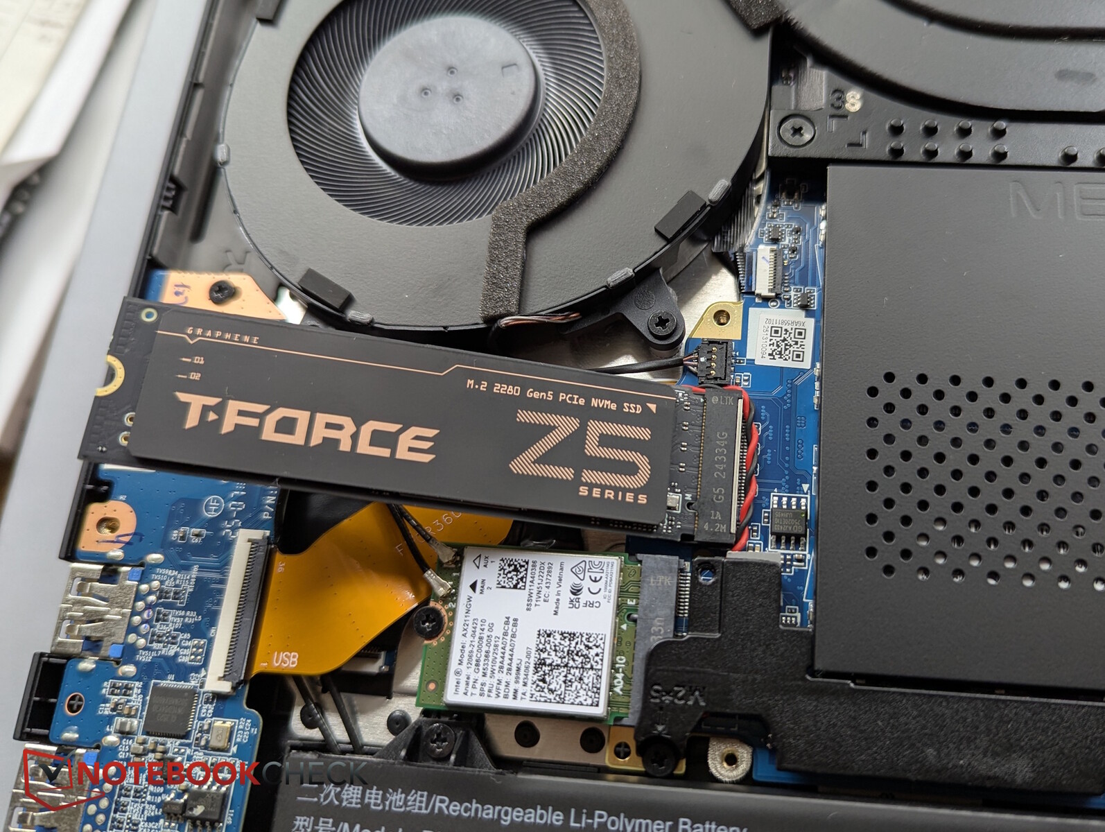 Como o desempenho máximo exige um slot M.2 com suporte a PCIe 5.0 x4, escolhemos o atual Schenker XMG Pro 16 para o nosso teste. O slot principal de SSD do notebook suporta o padrão moderno, enquanto o slot secundário, infelizmente, só funciona com PCIe 4.0.