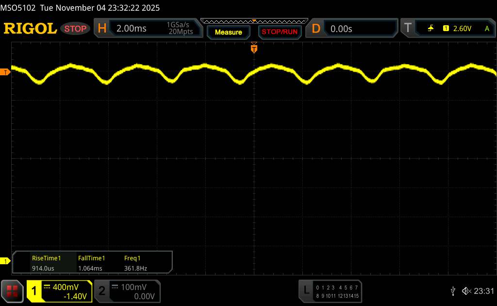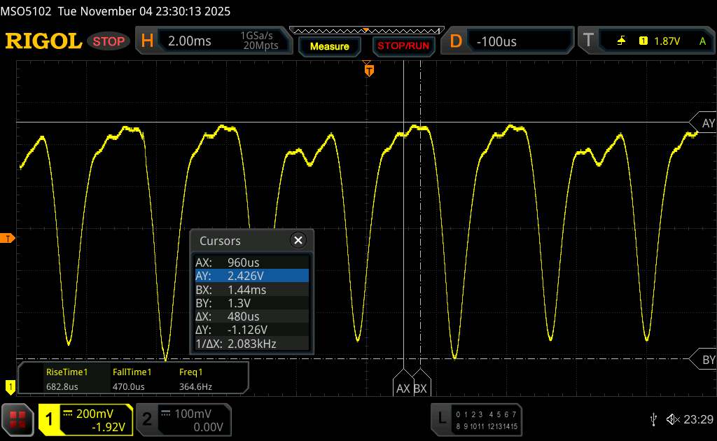 Usando um osciloscópio, medimos uma cintilação básica de cerca de 360 Hz. Além disso, a Vivo usa o escurecimento PWM de alta frequência em uma frequência de 2.083 Hz com o brilho da tela do telefone ajustado para o mínimo. Isso, juntamente com a curva de amplitude plana, deve ajudar a evitar qualquer desconforto para a maioria das pessoas, mas isso não pode ser completamente descartado para indivíduos sensíveis.