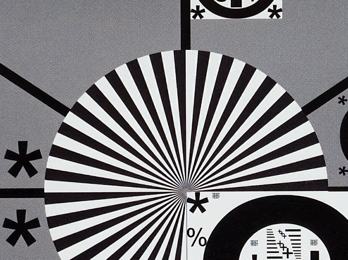 Ela também capturou muito bem o gráfico de teste e até mesmo os detalhes mais finos ficaram claramente visíveis. Embora tenha havido um leve desfoque e aberração nas bordas, isso foi apenas sutilmente perceptível.