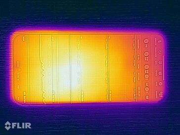 Embora as temperaturas da superfície do celular permaneçam inofensivas durante o uso diário, elas aumentaram muito em alguns casos sob carga contínua simulada usando o benchmark Burnout, atingindo um pico de até 47,6 °C. Embora isso seja muito quente, não representa nenhum problema para o usuário.