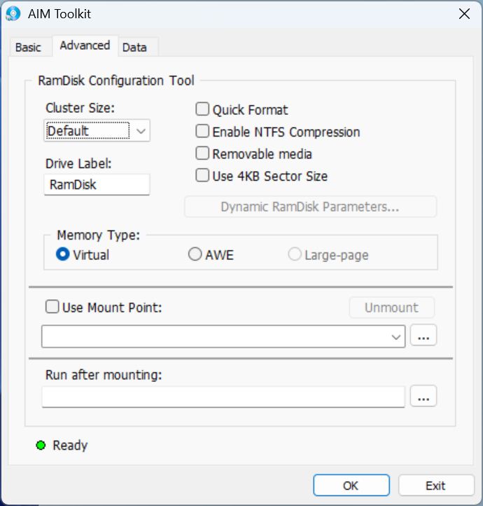 Para um teste como esse, o senhor precisa de uma unidade que seja consistentemente mais rápida do que qualquer SSD que esteja sendo testado. Isso elimina qualquer gargalo no lado da origem ou do destino. E é aí que entra a ferramenta de código aberto AIM Toolkit. Uma alternativa popular é o ImDisk. Ambas as ferramentas oferecem os mesmos dois recursos principais: elas podem criar unidades virtuais na RAM e montar arquivos de imagem como unidades virtuais.