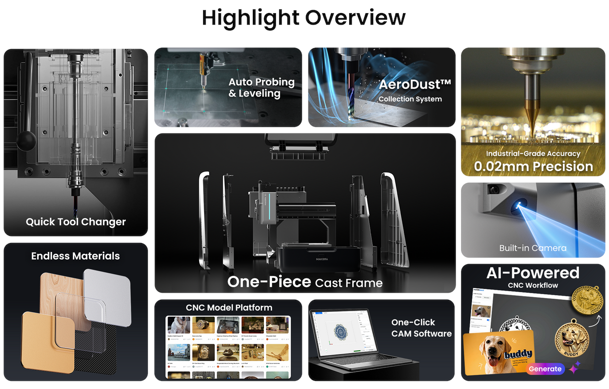 A Makera Z1 foi projetada para cortar materiais como madeiras duras e macias e MDF, todos os tipos de plásticos, compostos de FR4 e fibra de vidro e metais, incluindo alumínio, latão, bronze, cobre e outros metais não ferrosos. No entanto, deve-se observar que a Makera aconselha o corte de metais de forma muito lenta e cautelosa.