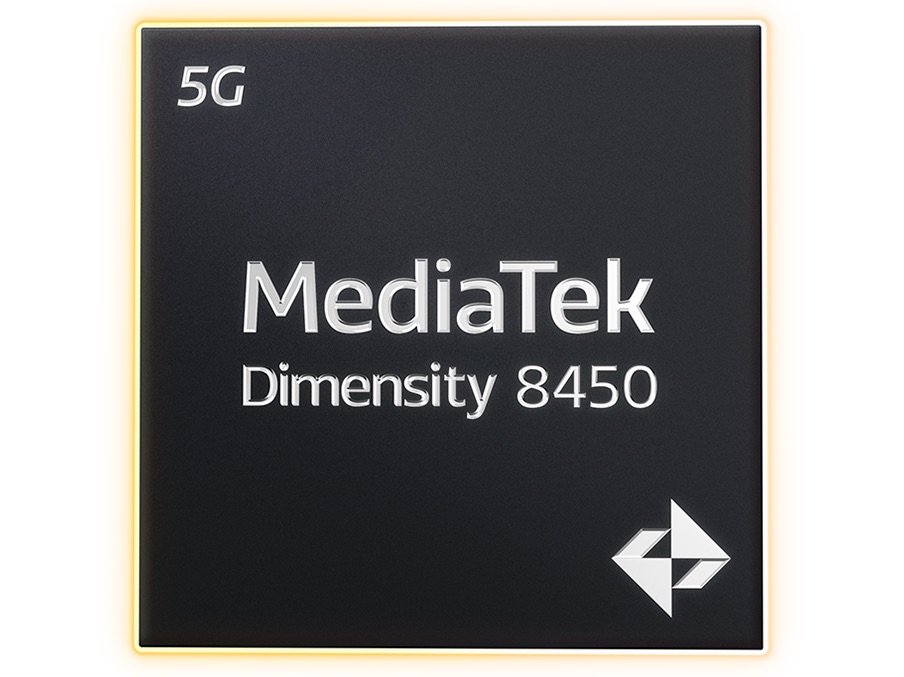 Em comparação com seu antecessor, o MediaTek Dimensity 8300, o MediaTek Dimensity 8400 e, portanto, o 8450, alcançam um desempenho multinúcleo até 41% maior, enquanto a unidade gráfica ARM Mali-G720 MC7 é até 24% mais rápida do que a ARM Mali-G615 MC6 de seu antecessor. De acordo com o fabricante, a eficiência energética da CPU e da GPU também melhorou, com um consumo de energia 44% e 42% menor, respectivamente. O MediaTek NPU 880 é usado como o chip de IA.