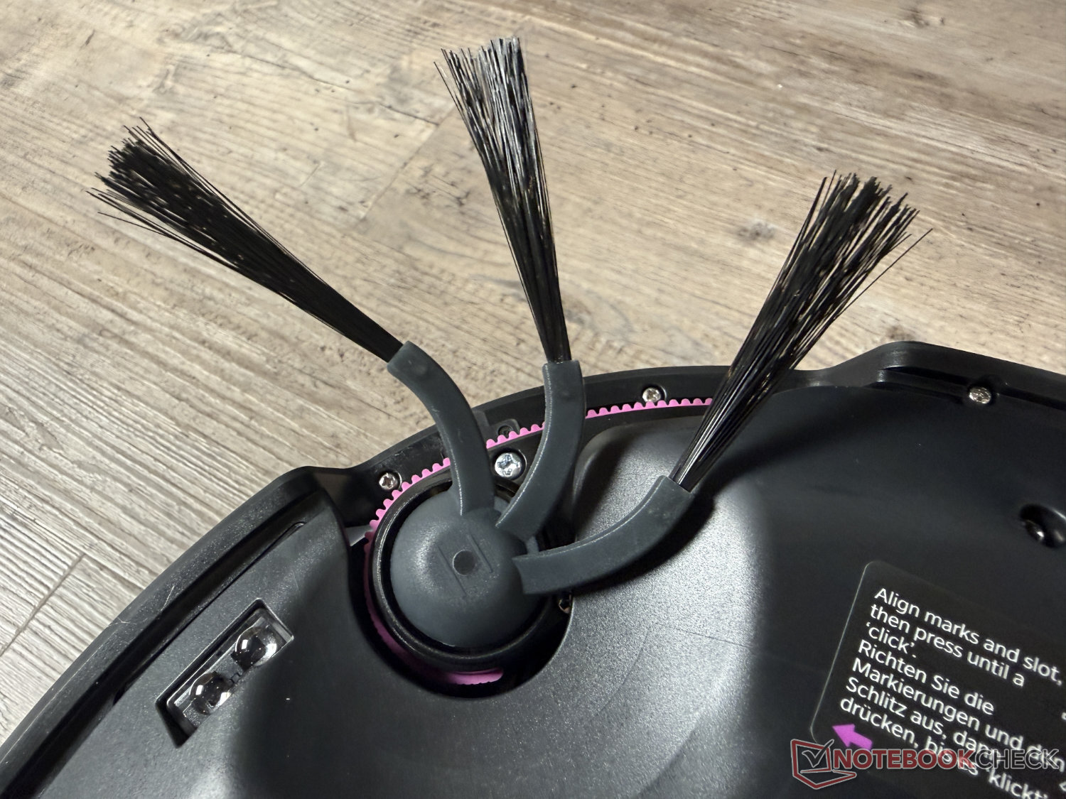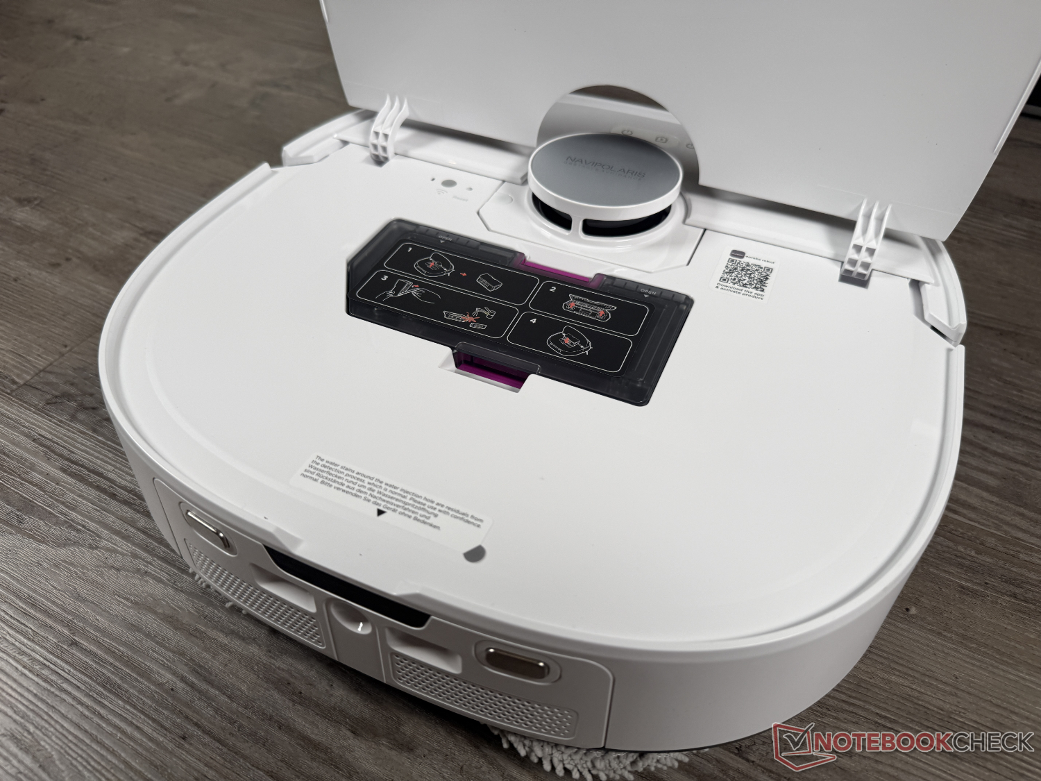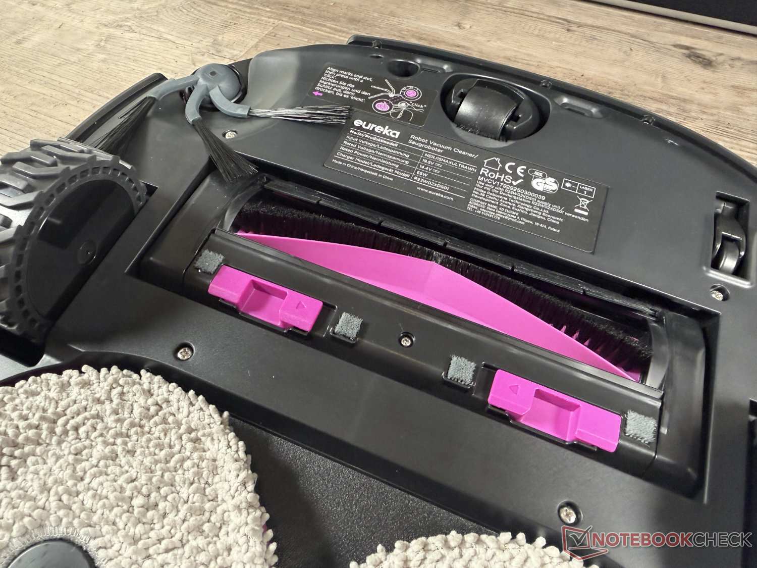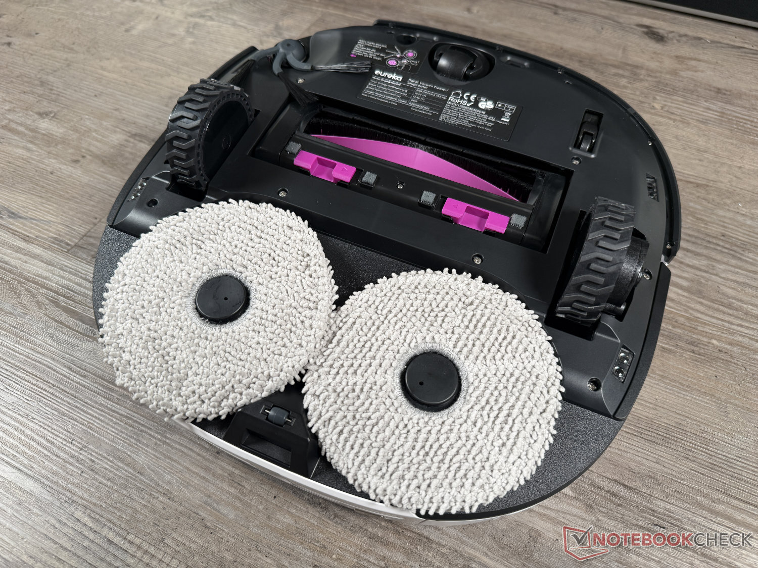 Para esfregar, a Eureka conta com os dois esfregões rotativos estabelecidos em seu modelo principal. Essa tecnologia de esfregão foi ofuscada pelo rolo de esfregão, que agora é usado até mesmo em muitos robôs aspiradores de médio porte significativamente mais baratos e novos, como o Ecovacs Deebot T90 Pro Omni ou o Mova S70 Roller. A sujeira do dia a dia foi recolhida o máximo possível. No entanto, como muitos outros modelos com essa tecnologia de esfregão, o robô atinge seus limites com manchas secas - mesmo após repetidas limpezas. Muitos modelos de rolo esfregão são superiores aqui. O desempenho é suficiente para a sujeira do dia a dia.