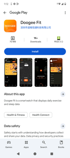 A configuração inicial envolve a leitura de um código QR com um smartphone. Isso leva o usuário a uma página de aparência básica com dois links para a loja de aplicativos, um para iOS e outro para Android. Um telefone Motorola acessível com Android 14 foi usado para realizar os testes; o aplicativo Doogee Fit funciona muito bem nele. Observe que o aplicativo requer muitas permissões para que a maioria de seus recursos funcione corretamente.
