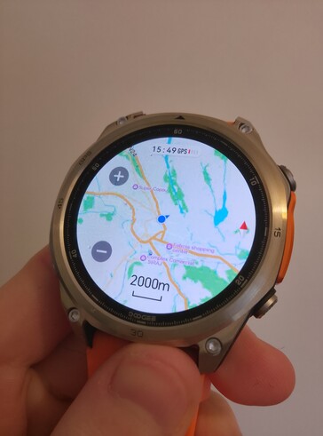Embora o relógio não precise estar conectado ao smartphone complementar o tempo todo, há coisas que ele não poderá fazer a menos que o senhor tenha o telefone por perto com acesso à Internet ativado. Por exemplo, o assistente inteligente e os recursos de tradução de texto precisam do telefone e do acesso à Internet. Os mapas funcionam off-line, mas o senhor precisa fazer o download manual dos dados da sua área primeiro usando o aplicativo. Vários trechos de mapas com 20 km de diâmetro podem ser salvos para uso off-line, o que deve deixar a maioria dos esportistas satisfeitos, mas os ciclistas (e não apenas eles) podem achar o número limitado.
