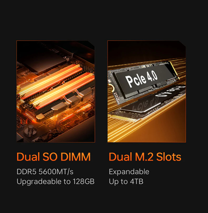 A Machenike pretende vender o GTS como um sistema barebone, sem RAM ou armazenamento, para se equiparar a outros concorrentes, como o GMKtec Evo-T1 (atualmente US$ 999 na Amazon) que analisamos no início deste ano. Como alternativa, diz-se que o minicomputador pode ser configurado com até 128 GB de RAM e 2 TB de armazenamento por meio de slots SODIMM e M.2 2280. Como mostra a imagem abaixo, a Machenike também incluiu muitas portas no GTS, apesar do tamanho do gabinete de 147 x 147 x 61 mm.