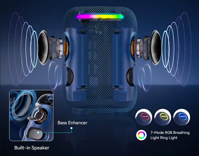 Além do hardware do mini PC, esse gabinete cilíndrico integra alto-falantes estéreo de 10 W, um mini subwoofer e um DAC de 24 bits, para que os usuários não precisem se preocupar com fones de ouvido ou alto-falantes externos. É claro que não seria legal sem a iluminação RGB, portanto, há também um anel de luz LED na parte superior.