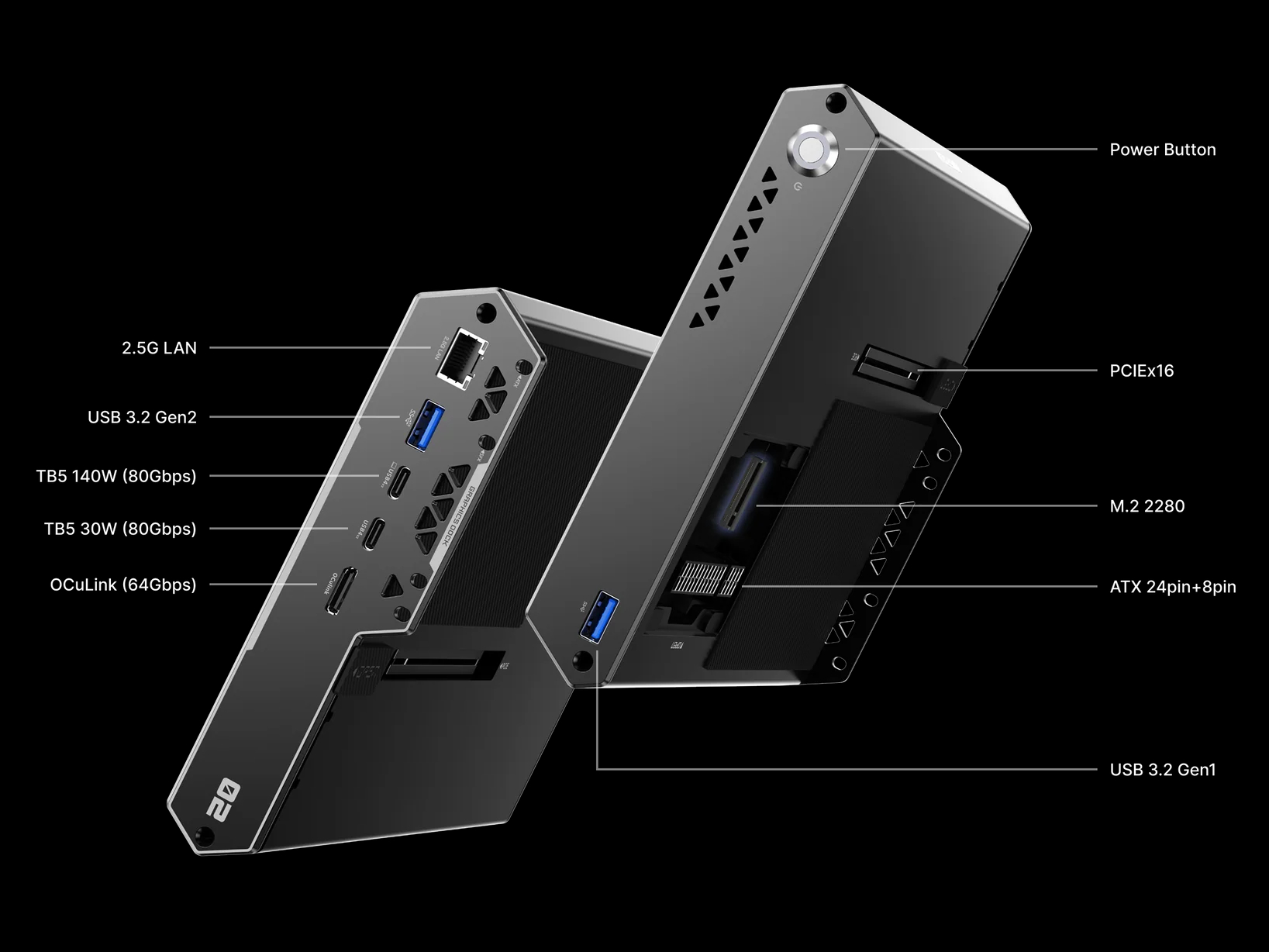 Por um lado, o DEG2 adiciona duas portas Thunderbolt 5 sem sacrificar a conectividade OCuLink, como o Peladn Link S-3. De acordo com o Minisforum, ambas as portas Thunderbolt 5 fornecem largura de banda de 80 Gbps, mas com os mesmos 64 Gbps oferecidos às placas gráficas via PCIe 4.0 x4 como OCuLink. Além disso, embora uma das portas Thunderbolt 5 forneça até 140 W de carga, a outra atinge um pico de apenas 30 W.