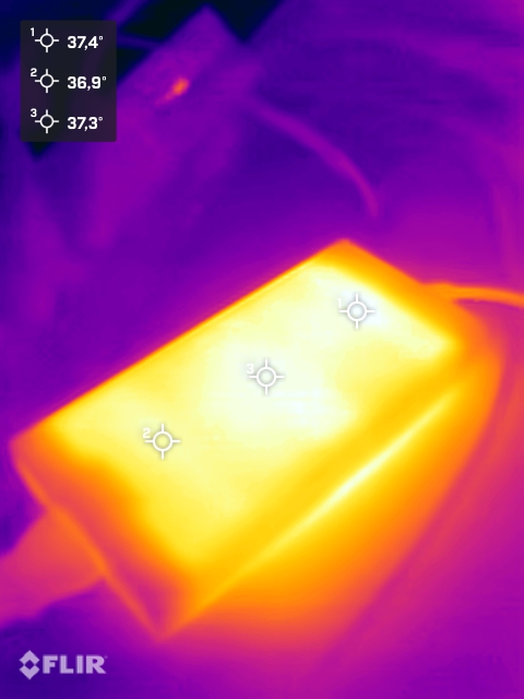 (+) A parte inferior aquece até um máximo de 31.5 °C / 89 F, em comparação com a média de 33.6 °C / 92 F