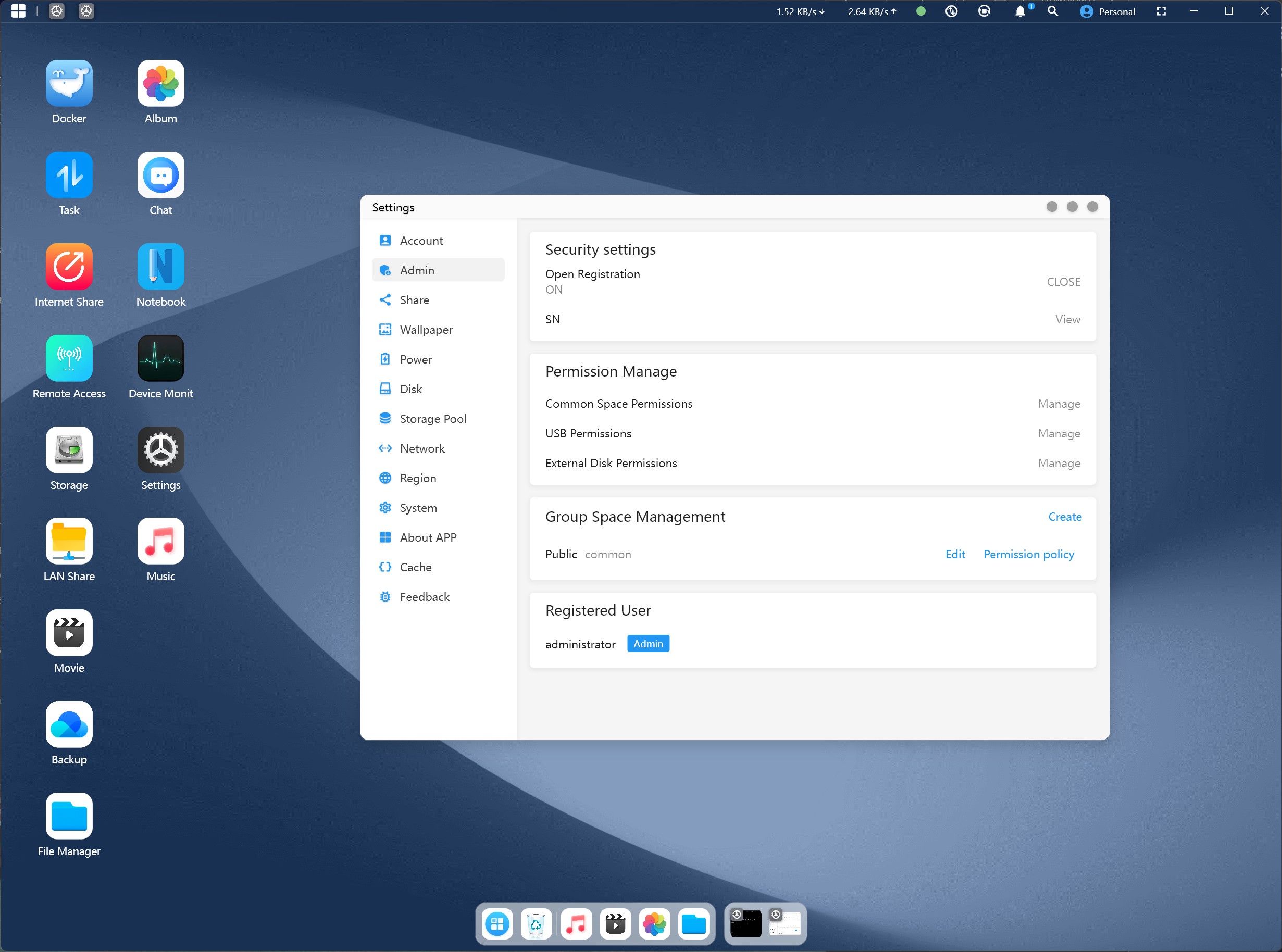 O Minisforum inclui uma ampla seleção de acessórios no escopo da entrega. Isso inclui uma placa adaptadora para a instalação de SSDs U.2, uma potente fonte de alimentação de 280 watts e os cabos de conexão necessários para colocar o dispositivo em funcionamento imediatamente. O Minisforum também fornece um sistema operacional especialmente desenvolvido, o MinisCloud OS. A abordagem é boa para integrar o NAS à sua rede. Alguns programas já estão pré-instalados e, com a opção de integrar contêineres Docker, quase todas as possibilidades estão abertas.