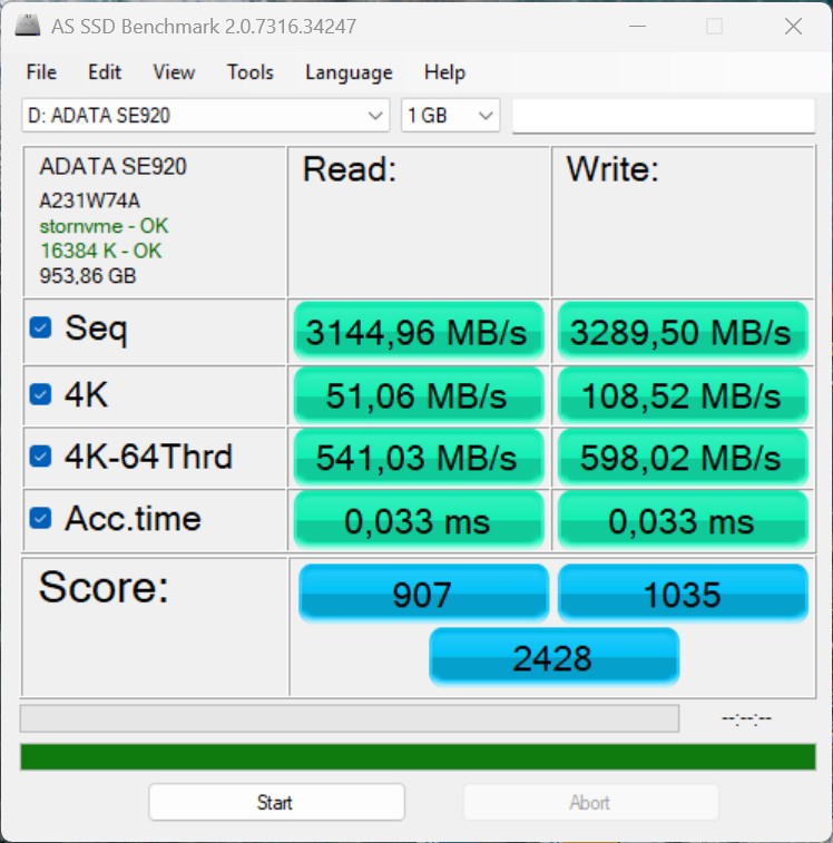 Connectivity - USB 3.x / USB4 / TB - AS SSD Seq Read Test (1GB) | |