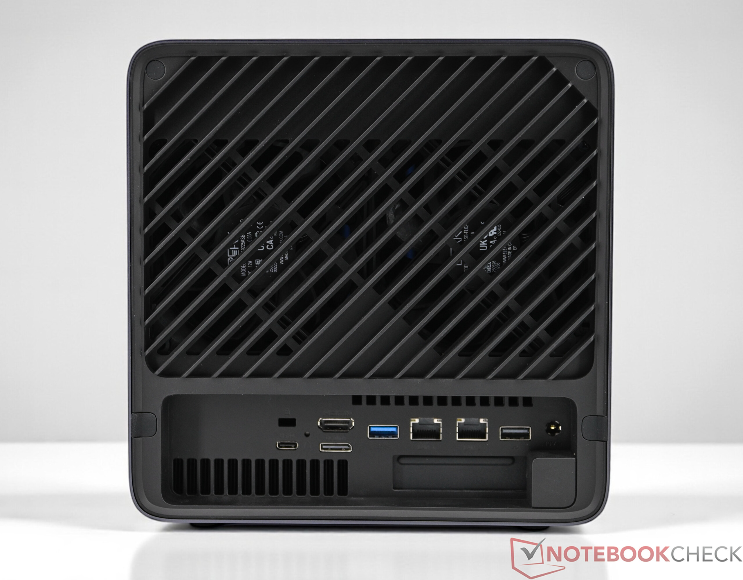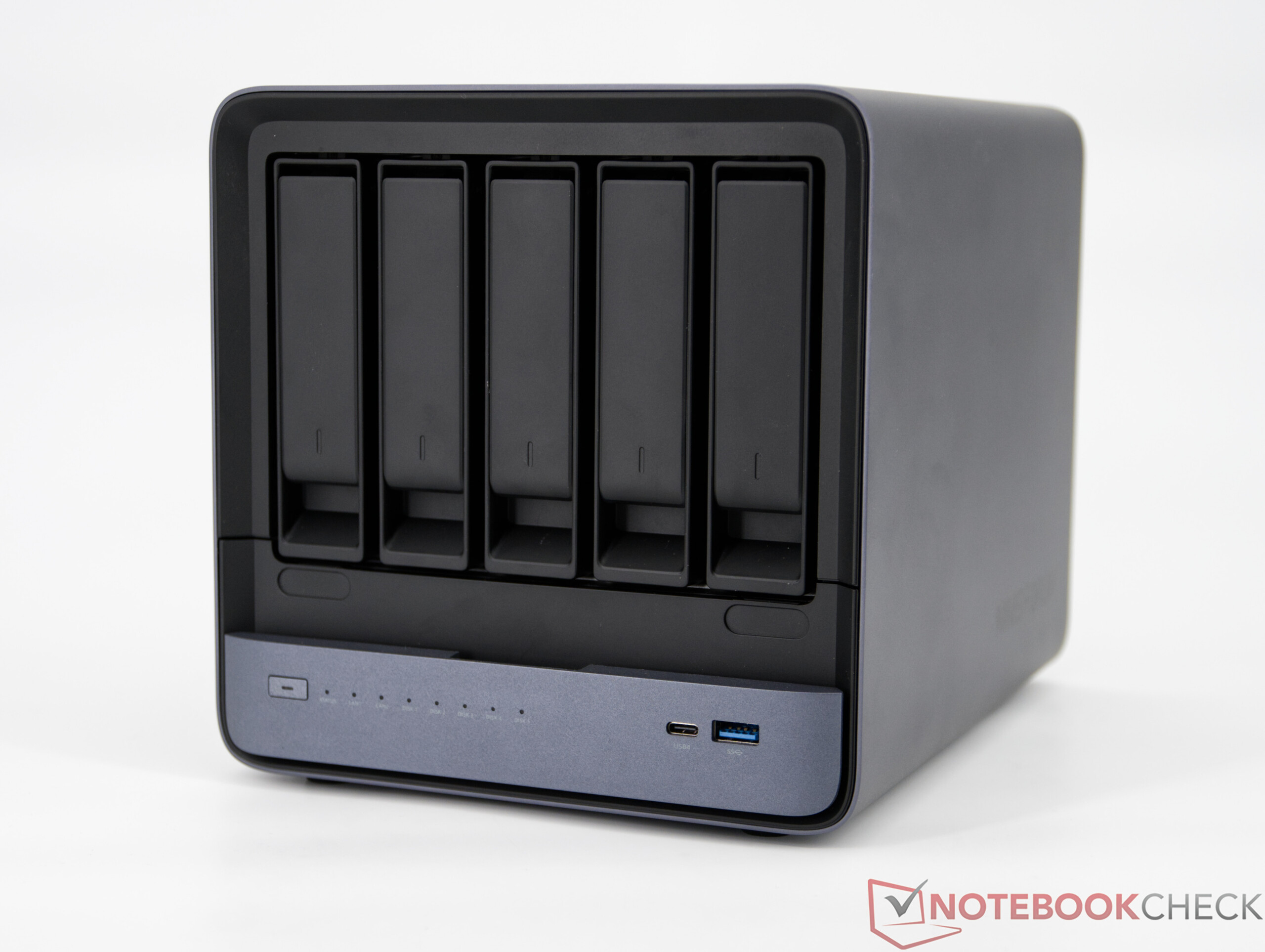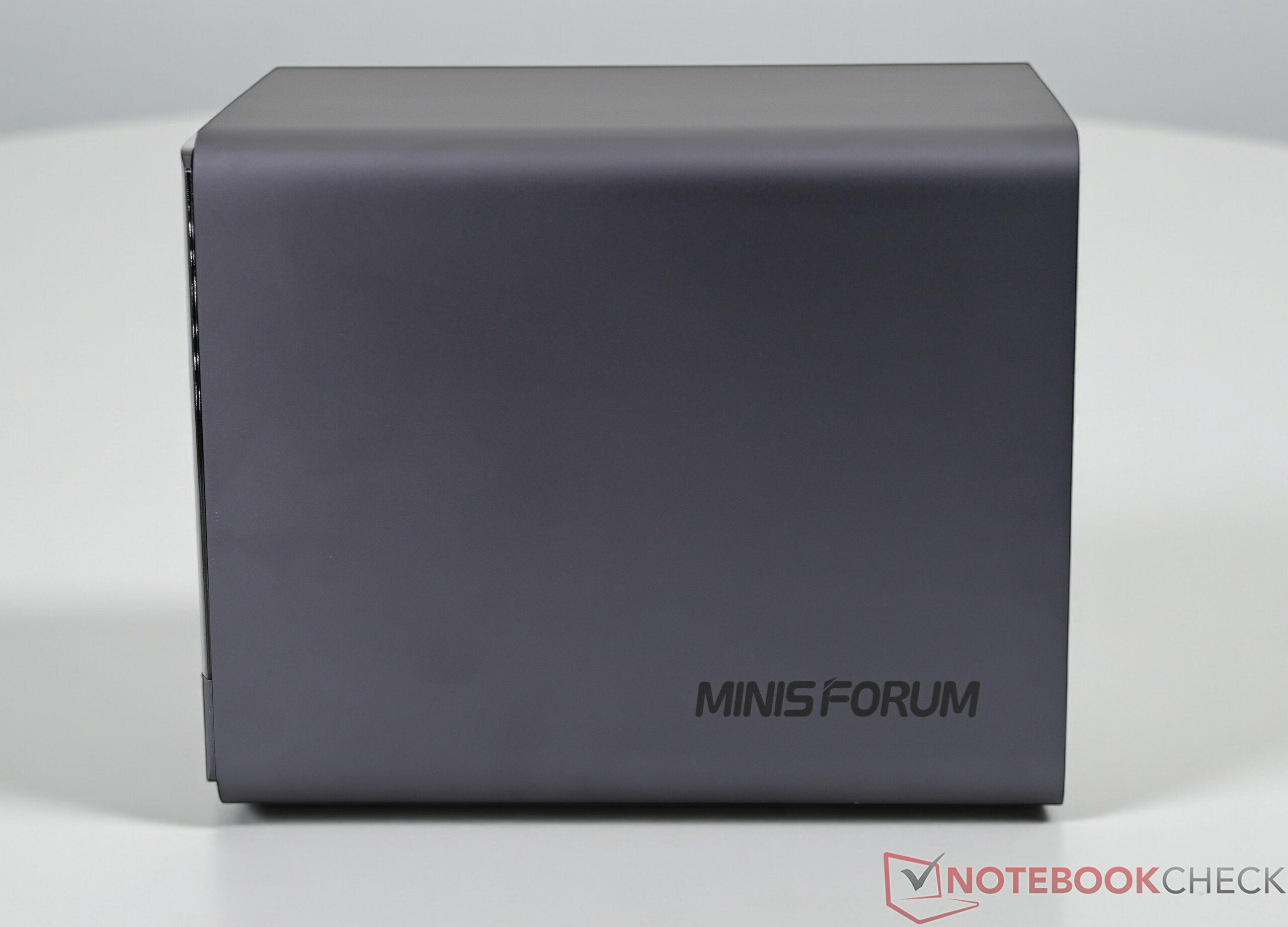 O Minisforum N5 Pro é feito basicamente de metal, complementado por alguns elementos de plástico que causam uma impressão de alta qualidade, tanto visualmente quanto ao toque. Um pequeno ponto de crítica diz respeito ao painel frontal brilhante, que é suscetível a impressões digitais e pode perder sua aparência com o tempo devido a pequenos arranhões. Em termos de recursos, o Minisforum N5 Pro não tem nada a esconder. Um total de cinco HDDs de 3,5" e três SSDs podem ser acomodados no NAS. Graças às inúmeras interfaces externas, o NAS oferece uma ampla gama de opções de expansão e conexão. A conexão de rede é particularmente bem-sucedida, com duas portas LAN rápidas (1 × 10 Gbit, 1 × 5 Gbit) que permitem uma taxa de transferência de dados e confiabilidade excepcionalmente altas. Também gostaríamos de mencionar a conexão OCuLink e o slot PCIe x16 interno, que permite que o sistema seja equipado com placas gráficas dedicadas, por exemplo.