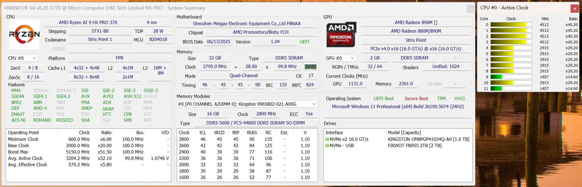 Geekom A9 Max, AI 9 HX 370 AMD Ryzen AI 9 HX 370 ⎘ AMD Radeon 890M ⎘ 32 GB Memória, 2048 GB SSD | Amazon: $999.00 Preço de tabela: 999€ | 709 g | 132 x 135 x 46.9 mm | |