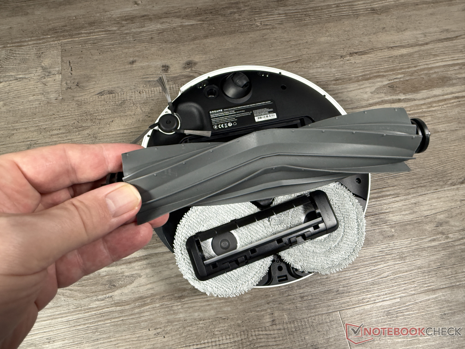A melhoria mais importante da terceira geração é o aumento significativo do poder de sucção. Agora há 150% a mais com 25.000 Pa em vez dos 10.000 Pa do antecessor. Isso deve beneficiar especialmente os resultados de limpeza de carpetes, que discutiremos mais adiante em nossa análise do Dreame L10s Ultra Gen 3. A escova principal, por outro lado, foi rebaixada. Um modelo de borracha sólida sem emaranhamento ativo antipêlos está sendo usado agora.