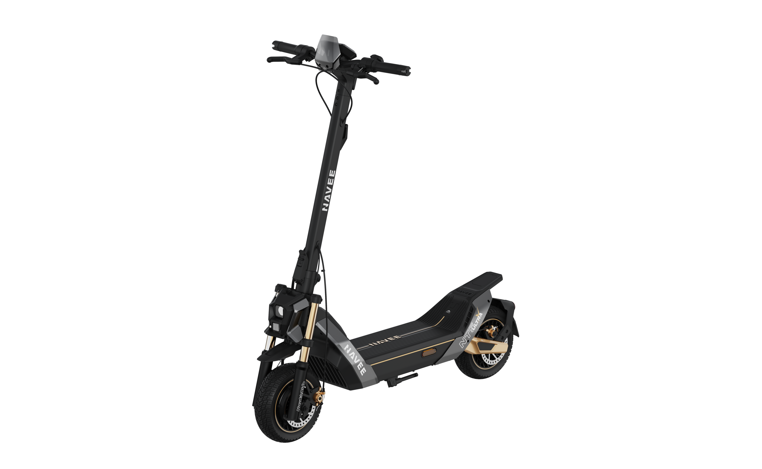Os demais destaques do Navee NT5 Ultra X incluem uma tela de LED de 5 polegadas, classificação IPX6 de resistência à água, capacidade máxima de carga útil de 150 kg (330 lbs), pneus tubeless autocicatrizantes de 10,5 polegadas, luz dianteira de 6 W, indicadores de direção, controles baseados em aplicativos, suspensão dianteira telescópica dupla e suspensão traseira com molas e freios a disco duplos com EABS. A Navee NT5 Ultra X tem preço de US$ 1.799. Não há informações sobre a disponibilidade até o momento da redação deste artigo.