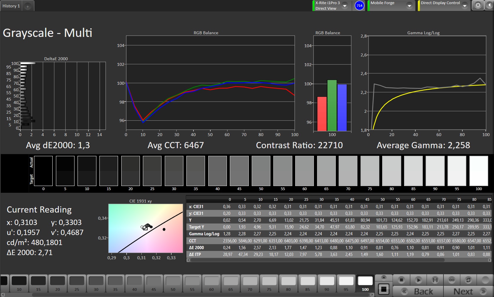 ΔE Greyscale Calman: 1.3 | ∀{0.09-98 Ø4.99}