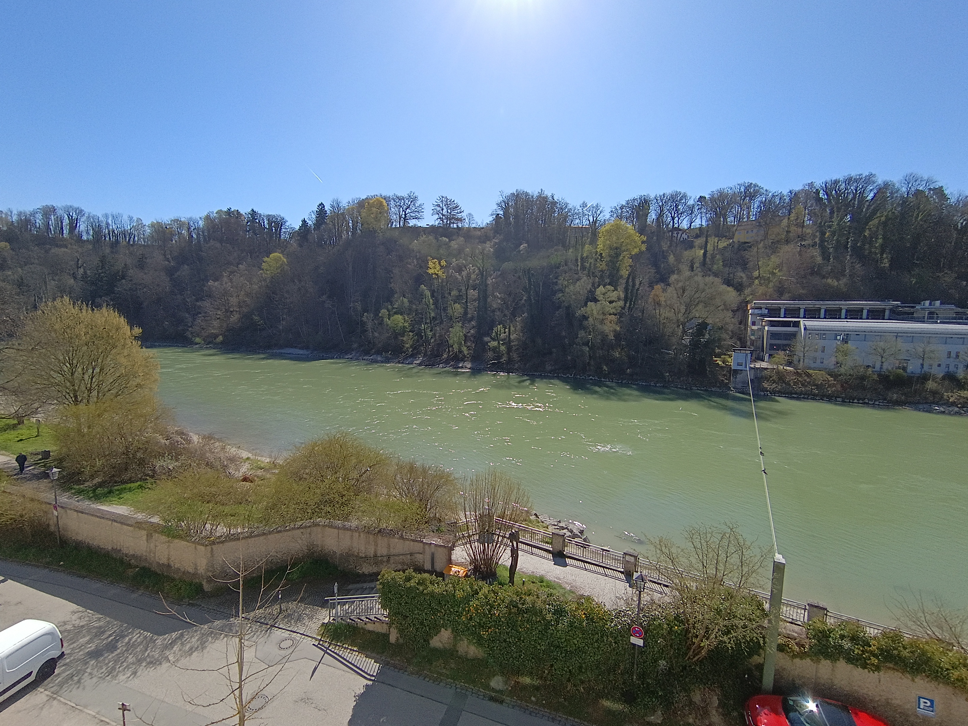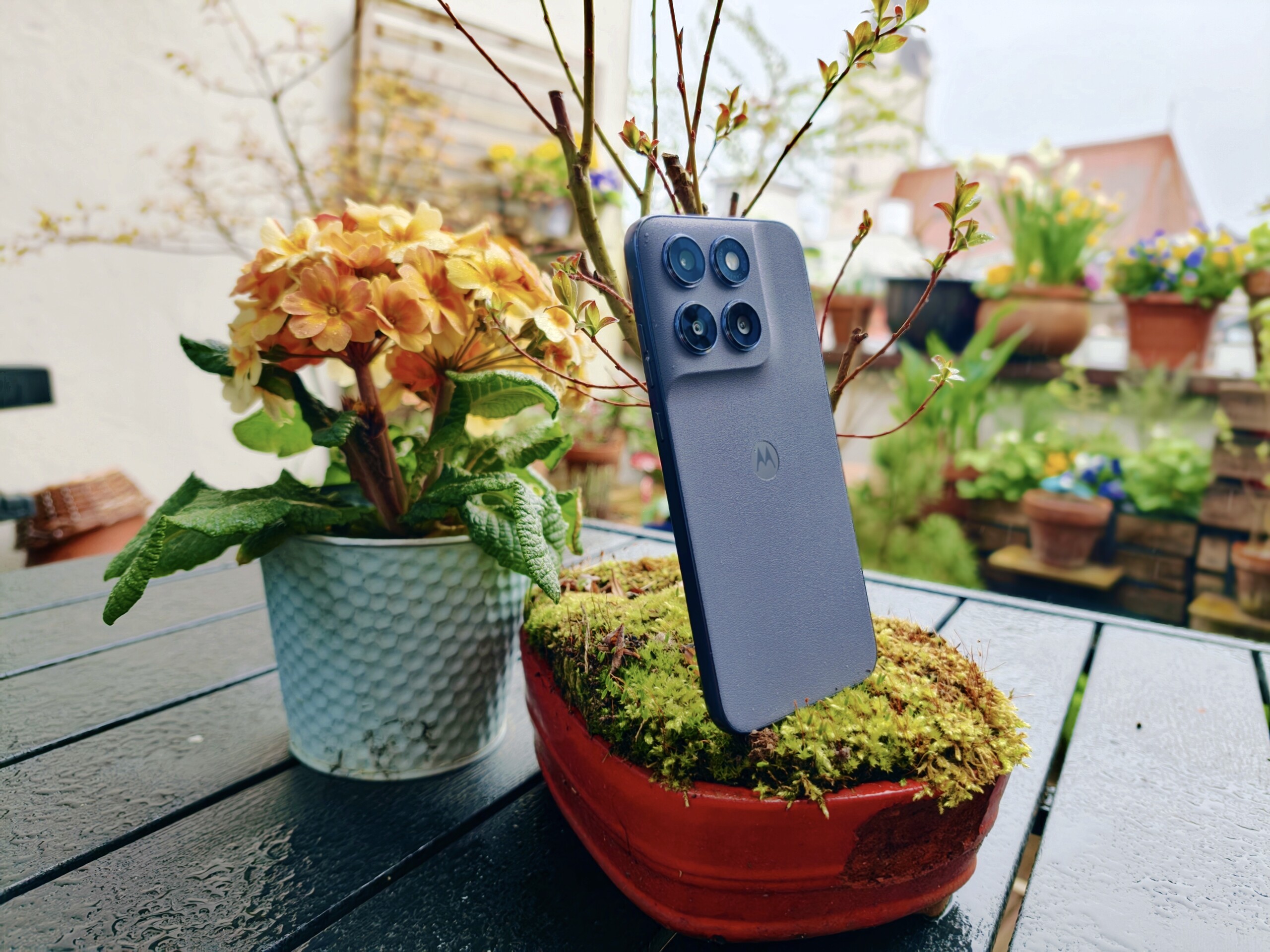 A câmera principal de 50 MP tira fotos atraentes com boa iluminação. No entanto, não se deve aumentar muito o zoom, e as áreas claras geralmente perdem o alcance dinâmico. Mesmo em áreas sombreadas em dias ensolarados, a qualidade da imagem começa a ser prejudicada, com as fotos ficando visivelmente mais granuladas e menos detalhadas.