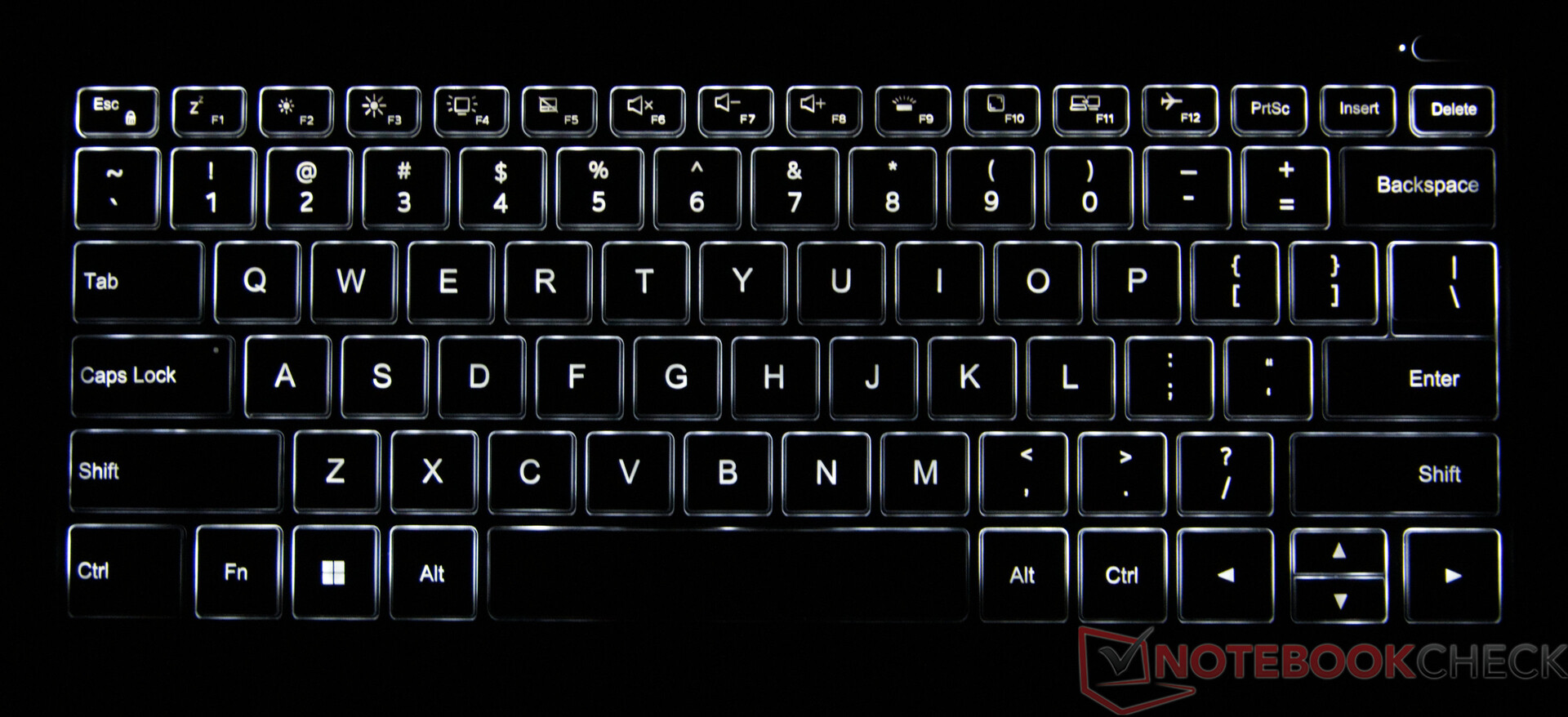 O teclado do Ninkear S14 oferece uma sensação de digitação precisa e agradavelmente firme, o que tem um efeito positivo no comportamento de digitação. Devido ao design, as teclas de seta para cima e para baixo têm apenas meia altura, mas o senhor pode se acostumar com isso. O dispositivo é fornecido apenas com um layout QWERTY, que também tem uma luz de fundo de dois estágios. O fabricante inclui adesivos para layouts de outros idiomas, mas eles prejudicam a aparência geral.