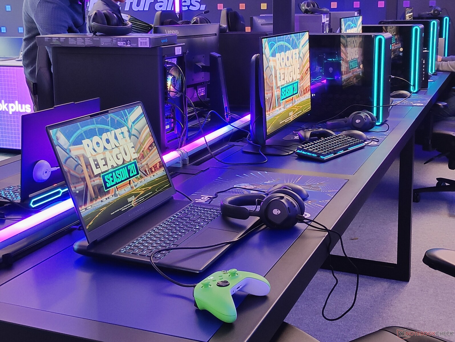 Ampla área de jogos com Dell Alienware e Lenovo Legion Para atrair um grupo-alvo mais jovem, a Intel também montou uma área de jogos equipada com PCs e laptops potentes para jogos da Dell Alienware e da Lenovo