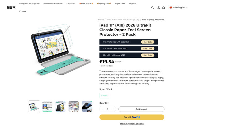 De acordo com o site ESR Techum iPad de nível básico atualizado também está quase chegando. Apesar de ainda não ter havido nenhum anúncio público em Apple, a ESR Tech já está anunciando protetores de tela 'paper-feel' para o iPad 12ª Geração. Embora ainda estejam on-line no momento da publicação, incorporamos as imagens abaixo para quando a ESR Tech retirar sua listagem.
